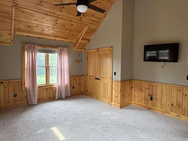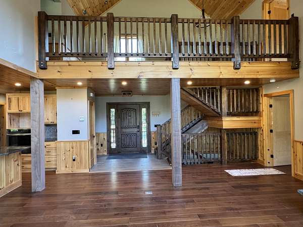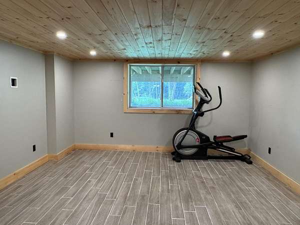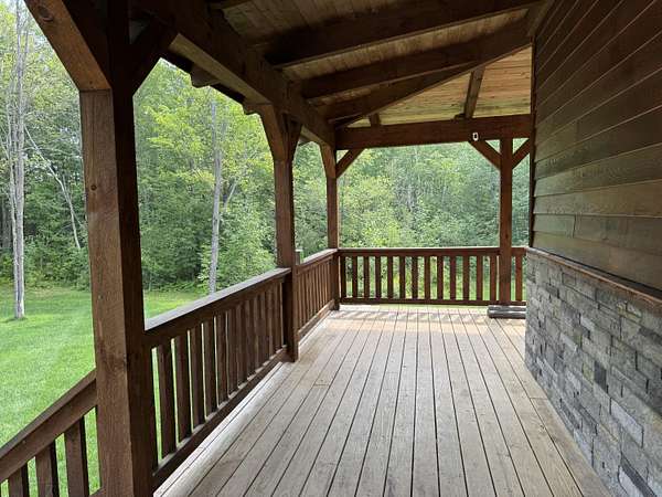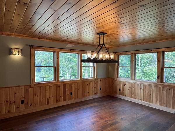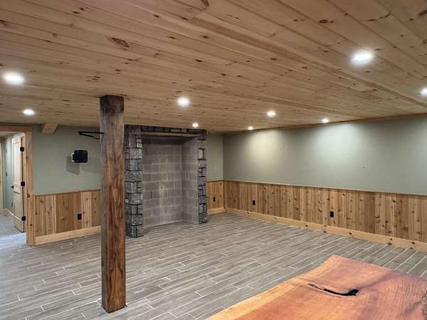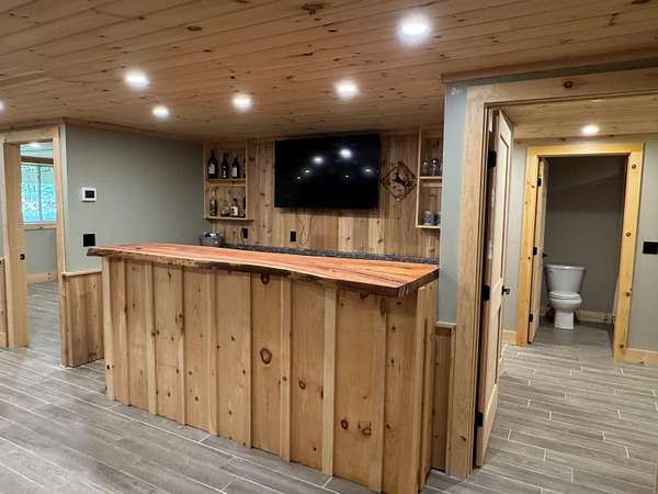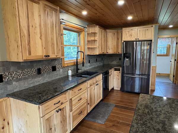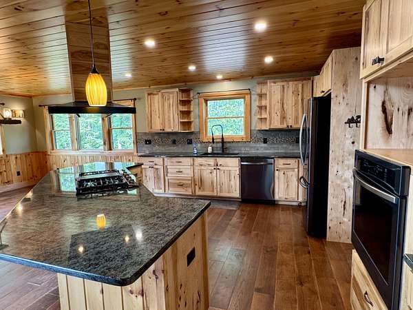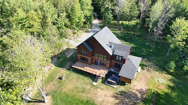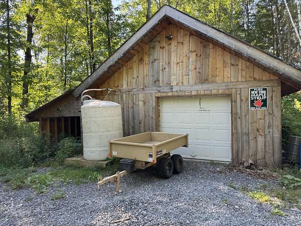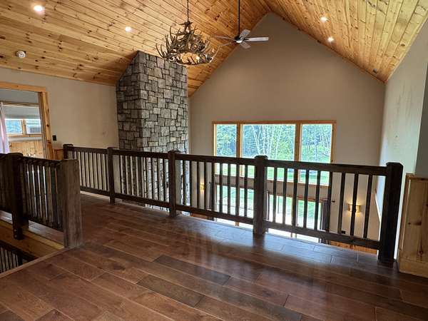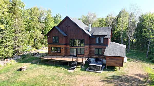 Nestled back among the trees, this stunning Adirondack contemporary offers a perfect blend of rustic charm and modern comfort. Step inside to an open-concept kitchen, dining, and living area with a beautiful fieldstone wood-burning fireplace. The kitchen is a chef's dream with striking mountain-green granite countertops, a large island with gas range, and an open view of the living room that is ideal for entertaining. The main-level primary suite is just off the living room, featuring an ensuite bath with a jetted stand-up shower, soaking tub, and oversized closets. Upstairs, discover the bright loft area, three bright and spacious bedrooms, including two connected by a Jack & Jill bath with dual sinks and tiled bath/shower combo. The finished basement level offers endless possibilities with a built-in bar and cabinetry, a family room, an additional bedroom with oversized closet, and a connected full bath with an oversized tile shower. There's even space to create your own home theater. All of this sits on over 25 acres of pure privacy, complete with a detached garage previously used for maple production-perfect for a workshop or hobby space, a hot tub for unwinding, and a pond for fishing. This exceptional property is a true Adirondack gem and one you don't want to miss!