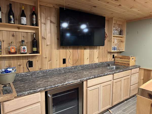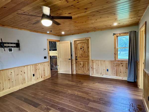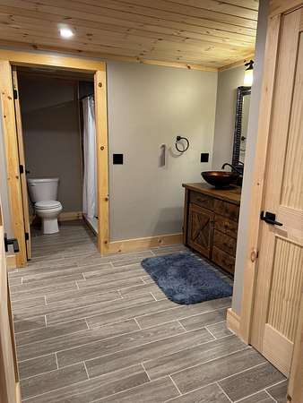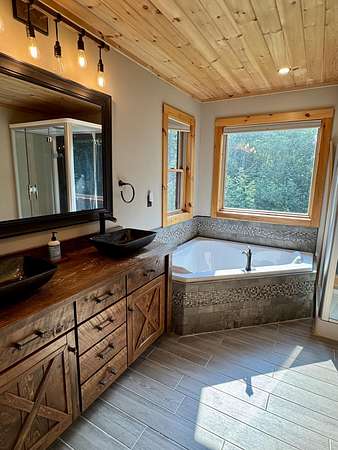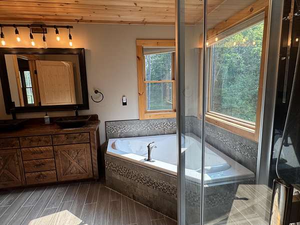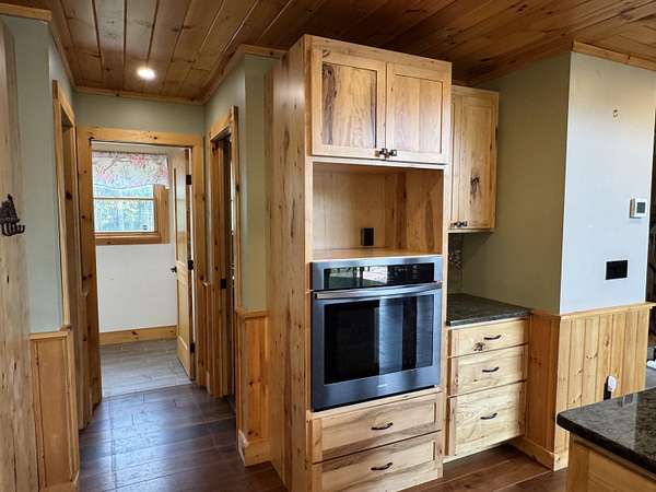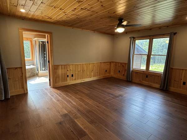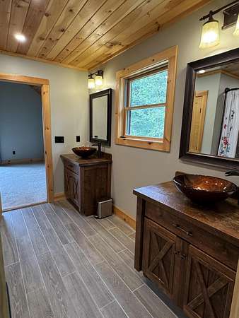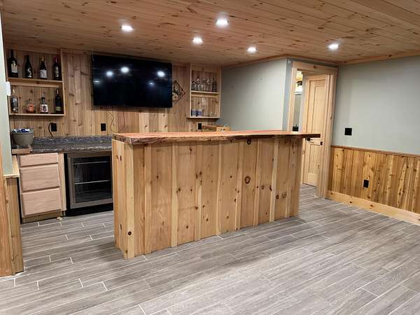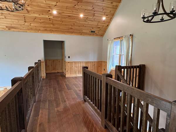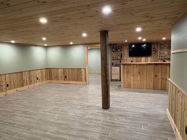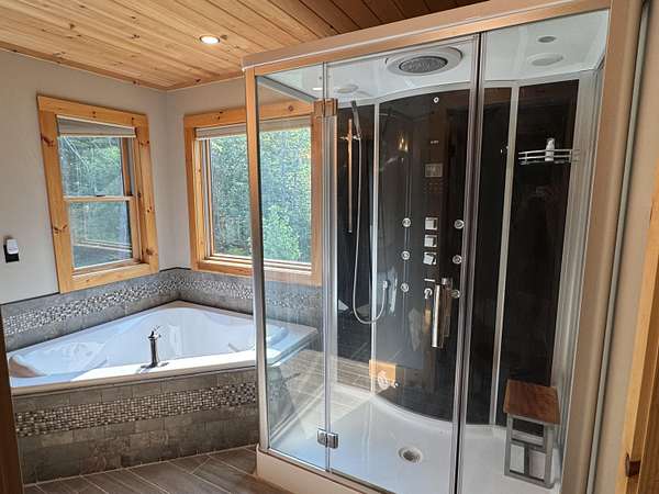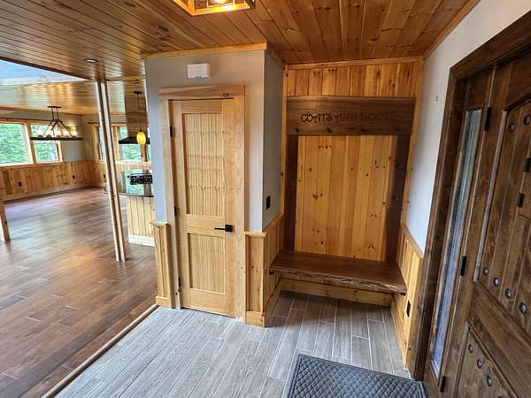Nestled back among the trees, this stunning Adirondack contemporary offers a perfect blend of rustic charm and modern comfort. Step inside to an open-concept kitchen, dining, and living area with a beautiful fieldstone wood-burning fireplace. The kitchen is a chef's dream with striking mountain-green granite countertops, a large island with gas range, and an open view of the living room that is ideal for entertaining. The main-level primary suite is just off the living room, featuring an ensuite bath with a jetted stand-up shower, soaking tub, and oversized closets. Upstairs, discover the bright loft area, three bright and spacious bedrooms, including two connected by a Jack & Jill bath with dual sinks and tiled bath/shower combo. The finished basement level offers endless possibilities with a built-in bar and cabinetry, a family room, an additional bedroom with oversized closet, and a connected full bath with an oversized tile shower. There's even space to create your own home theater. All of this sits on over 25 acres of pure privacy, complete with a detached garage previously used for maple production-perfect for a workshop or hobby space, a hot tub for unwinding, and a pond for fishing. This exceptional property is a true Adirondack gem and one you don't want to miss!