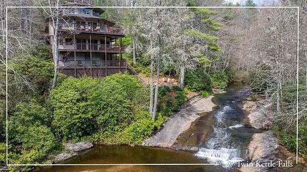 From Cashiers, 107N to First Bee Tree Road on your right. Turn right and proceed to Cedar Creek Road on your right. Turn right and proceed until you reach Twin Kettle Falls on your right. Turn right, proceed down the road and it will be the second home on your left.