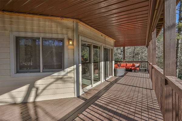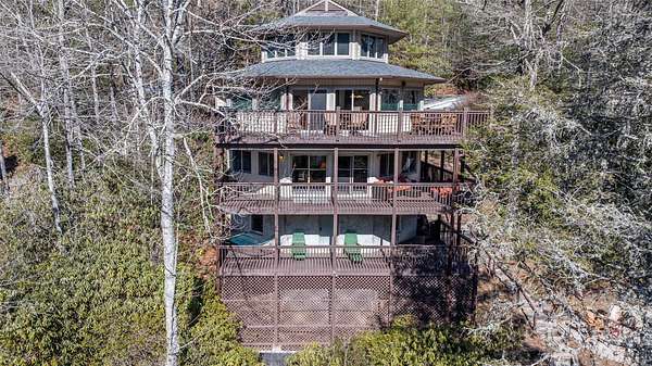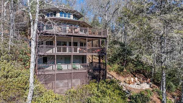 Rare Streamfront Retreat with Stunning Waterfall & Prime Location. Discover a one-of-a-kind opportunity to own a stunning streamfront home featuring a natural sliding rock waterfall and approximately +/- 150 feet of picturesque stream frontage. Perfectly situated just around the corner from Lake Glenville, Signal Ridge Marina, is only minutes from downtown Cashiers; this exceptional property offers both tranquility and convenience. Inside, the spacious three-bedroom, three-bathroom home boasts an inviting layout, seamlessly connecting the kitchen, dining, and living areas. Large windows throughout flood the home with natural light while allowing you to enjoy the soothing sounds of the waterfall. Outdoor living is effortless with three levels of deck space, providing the perfect setting to relax and take in the beauty of nature. There is lower-level den and sub-basement area offer versatile bonus spaces to suit your needs. Additionally, the oversized two-car garage provides ample parking, extra storage, and a built-in work table for added convenience. Don't miss the opportunity to relax by the waterfall at the newly created firepit location. The Home comes furnished with a few exceptions.