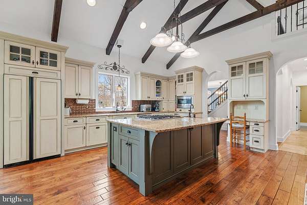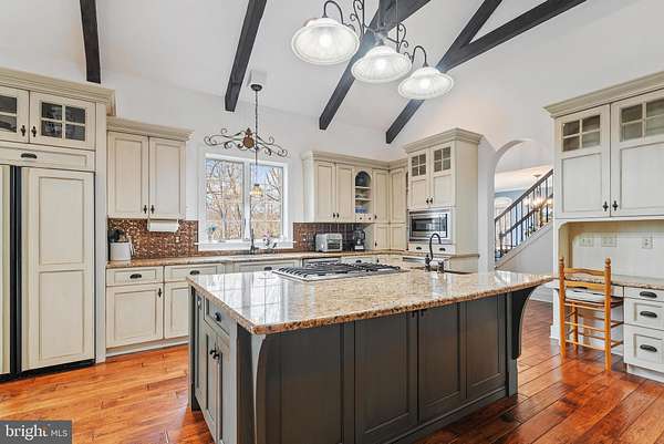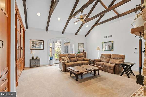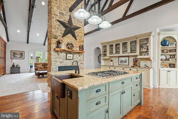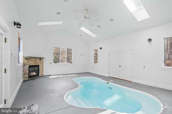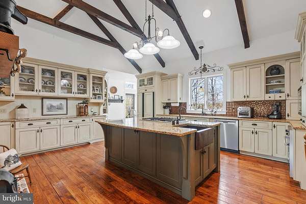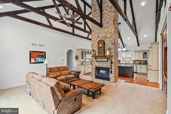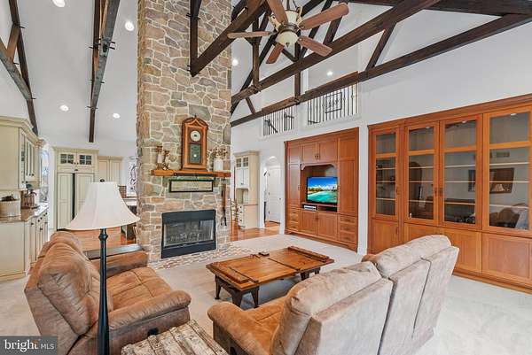 Welcome to sought-after Christiana, Pennsylvania, where this exceptional custom-built estate is privately perched atop nearly 6 wooded acres, offering a rare blend of craftsmanship, comfort, and resort-style living. From the moment you arrive at the impressive arched wood entry doors, the home makes a lasting impression with soaring cathedral ceilings, a graceful turned staircase, and a sun-filled formal dining room. Hardwood flooring flows through the foyer, dining room, kitchen, and breakfast area, while the dramatic great room showcases exposed timber framing, recessed lighting, a full wall of custom solid cherry built-ins, and a striking two-story double-sided stone wood-burning fireplace(with components to convert to gas ) shared with the gourmet kitchen. Designed for both entertaining and everyday living, the kitchen features custom cabinetry, granite countertops, a large center island with breakfast bar, built-in desk area, buffet area, matching built-in refrigerator, Viking 5-burner gas cooktop, Viking wall oven, microwave, dishwasher, dual deep sinks, and a bright breakfast room surrounded by windows overlooking the scenic property. The main-level primary suite is a luxurious retreat with tray ceiling, recessed lighting, decorative wood accent wall, ceiling fan, sitting nook, and a custom walk-in closet, complemented by a spa-inspired bath with heated tile floors, granite double vanity, soaking tub, and an oversized walk-in tile shower with five-head system. Just beyond, the remarkable 26' x 20' indoor pool room features radiant heated floors, a heated in-ground pool, skylights, gas fireplace, and dedicated equipment room for year-round enjoyment. The east wing of the main level offers an additional private suite with custom wall cabinetry, walk-in closet, recessed lighting, and full bath-ideal for guests or multigenerational living. A well-appointed laundry room with double sink, reverse osmosis system, and abundant cabinetry, along with a mudroom and convenient half bath, completes the main level and leads to the oversized three-car insulated garage with high ceilings, wall heater, and openers. Upstairs, a balcony overlook provides the perfect office or sitting area, along with two additional bedrooms, Which one bedroom adjoins and shares access to a full hall bath with the other . The finished lower level adds a media room with 65" TV, wood accent walls, LVP flooring, wet bar w/ mini refrigerator, spacious guest bedroom with egress window, interior garage access staircase, and a mechanical room featuring a newer heat pump, tankless water heater(for radiant floor heating), water heater, gas heater, cross space and more. Outdoor living is equally impressive with a pergola-covered patio, small electric-equipped shop, additional shed, and peaceful surroundings framed by mature trees. A truly distinctive property offering space, privacy, and exceptional amenities-this is luxury country living at its finest.