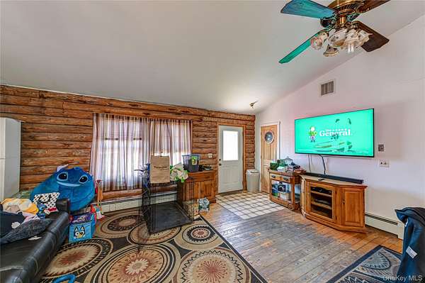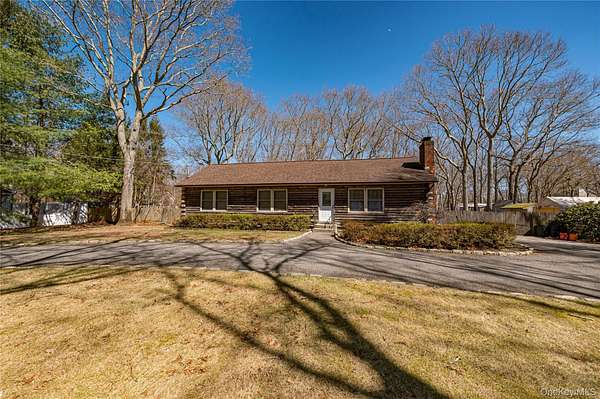 Set on 1.76 acres of desirable Long Island horse property, this unique modern log cabin at 97 Woodlot Rd in Ridge offers a rare opportunity to create your dream retreat. Built in 1986, the home features solid construction and "great bones," highlighted by soaring character, warm wood tones, and a layout full of potential. Inside, you'll find central air for year-round comfort, oil heat, and propane cooking. The home also includes a full basement with impressively high ceilings and a separate outside entrance-ideal for future finishing, extended living space, or possible accessory use (with proper permits). The expansive property provides plenty of room for equestrian use, outdoor living, or simply enjoying the privacy and natural surroundings. This is a perfect opportunity for buyers looking to customize and add value-while the home does need some TLC, its structure, setting, and unique style make it well worth the investment. Being sold as-is.