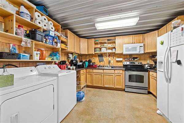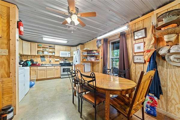 Barndo 1: Total air-conditioned sf is 3097 (AC area includes main living is 1827 sf, 1007 sf shop and 263 sf 3rd bedroom or bonus room). 3 bedroom (or 2 bedroom - bonus room), 2 bath, 2 car garage, and 1 car garage. Standard septic system. Shop has a mini split to keep it warm in the cool months and cool in the hot months. Two car garage has an extra 10' x 10' room that is climate controlled that can be used as an extra room, storage, etc. Master bedroom closet is also a safe room-storm shelter. Built in custom cabinets in room #2 and there is a laundry room with mudroom and office space. This property offers a nice large screened-in dog kennel on the south side attached with entry from the shop. An additional room off the east side of the barndo that could be used as office space, 4th room, large dining room, etc. The living room offers a built-in wood burning stove to save on electricity. There is a beautiful extra-large screened in patio that faces east. There are 10' awnings on the North and the South side of barndo. All of this is under one roof. The roof is corrugated metal as well as the sides. This barndo was built to last. Built in 2017. Barndo 2: 900 Sq. Ft., 2 Bedroom, 1 Bath with attached screened in porch on the East and West side. Attached Conex to the patio includes 2 bunk beds and a full-sized bathroom. Bardo 2 has its own standard septic system. Includes a large awning on the North side of the building. East side of the Conex has extra room for shop tools, a closet, etc. Built in 2011. Either Barndo can be sold separately. Excellent hunting: deer, turkey, dove, quail, and varmints. This property has been cleared of prickly pear cactus. Remote gated entry. 1 pond. Coleman County Co-op water, Coleman County Electric, and Coleman County Telephone Coop with fiber optic internet. Built in alarm system that just needs to be reactivated. More or less acreage can be sold with the 2 homes.