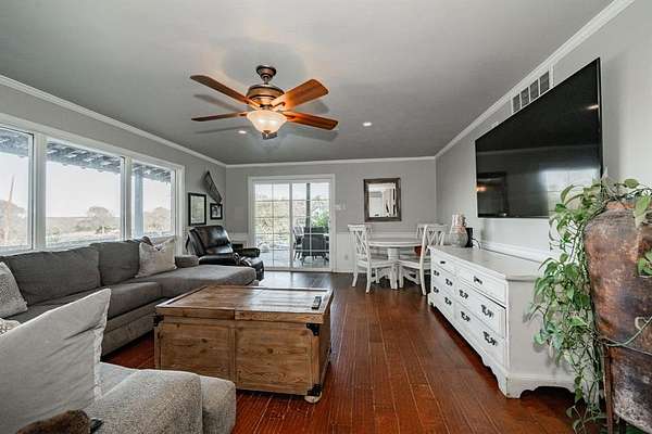 Est $5,939/moImpressive estate in North Rockwall. Perfectly situated on 3.5 acres with a pool and multiple ponds. Upon entry you are greeted with stunning hand scraped hardwood floors and chefs kitchen with commercial appliances. The living room features a floor to ceiling fireplace, beautiful beamed ceilings, built-ins, panoramic views and much more. Large secondary living overlooking the pool with and property with rolling hills. Oversized pool with hot tub. Multiple outdoor living or entertaining spaces, as well as, a large covered patio featuring a built in stone pizza oven and fireplace to stay cozy. Professional landscaping, mature trees and so much more. This one is a MUST SEE! Rockwall ISD.