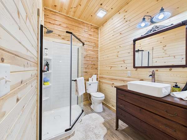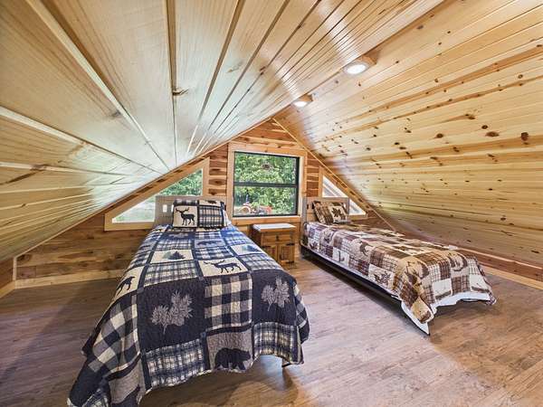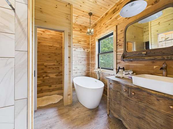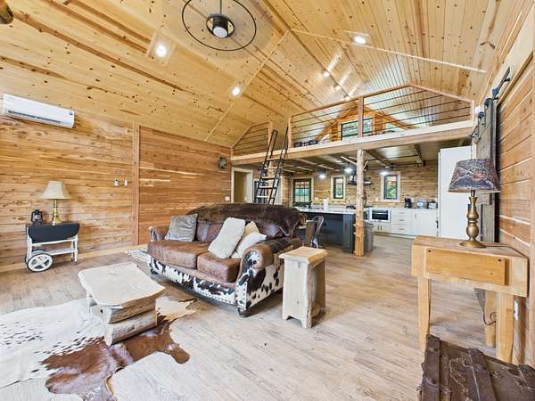 - 2 bedrooms | 3 bathrooms | ~1,584 sq ft o Gorgeous cedar log construction--naturally insulating, low-maintenance, and built to last o Spacious open kitchen with stainless appliances and custom cabinetry o Vaulted great room with soaring beams and picture windows o Loft overlooking living space--perfect for home office or guest nook o Full-length covered porch with cedar railings for morning coffee or evening sunsets o 5 acres of private, wooded ground with room to expand or add a shop o New mechanicals, roof, HVAC--turnkey and move-in ready