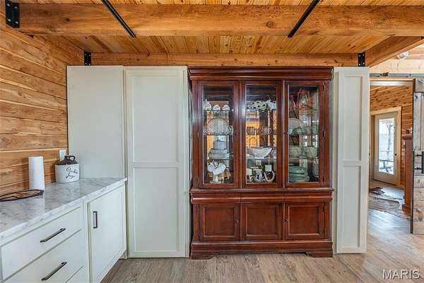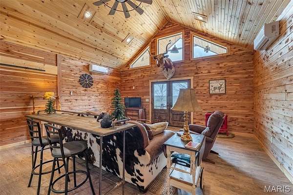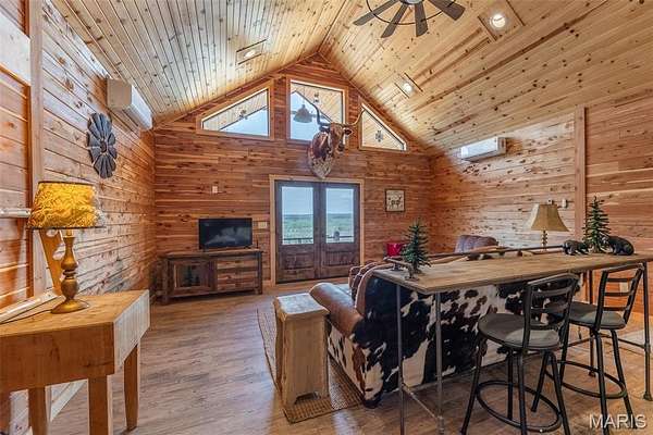 Absolutely stunning cedar log home with a breath taking view of God's Country! Five acre tract tucked back in off of a county road with plenty of privacy but less than 15 minutes from Doniphan and even quicker to public access to gorgeous Current River. This home was just built and the owner had some of those unexpected live events that changed their plans. Work is still being completed on it, but it is move-in ready! You have two beautiful bedrooms and baths on the main floor with a loft bedroom with a view you won't believe. Beautiful wood everywhere! Stylish designer kitchen with stainless appliances and custom counters and cabinets. Basement is ready for your choice of bedroom, game room, man cave, or whatever with plumbing stubbed in for downstairs bath. Main floor consists of 1584 sq feet and basement is 640 sq feet. The home is built to enjoy the view with two outside seating areas, plus a back deck, and a back screened in seating area. Lots of places to enjoy the sunrises, sunsets, or just to watch the wildlife as the deer frequent the area in front of the home. The owner built this as their dream home. But are ready to allow you to take it from here and make it all yours.