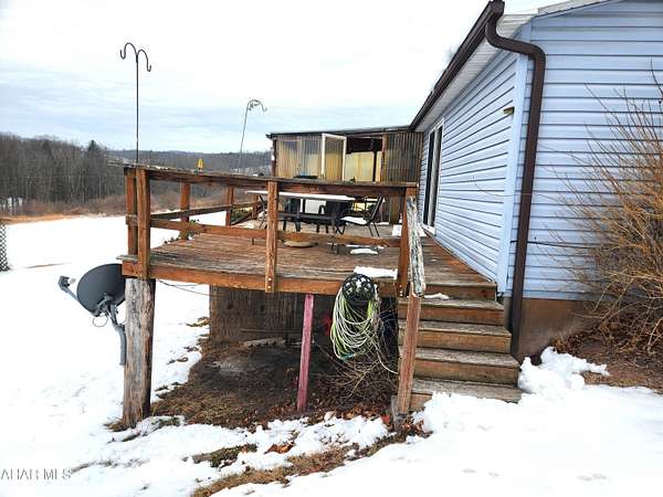 Are you looking for quiet country living? Then come take at look at this updated manufactured home located on 3.386 acres. This home has been remodeled over the past 8 years. It features a standing seam metal roof (2020), new siding (2018), laminate flooring (2019), new carpeting in 2023 and new insulated windows in 2018. With 3 bedrooms and 2 bathrooms and 1404 sf, this home is not too big or not too small. Sit on the deck, sip your favorite beverage and enjoy the views! This home has two heat sources, an electric furnace and a wood burner, as well as central air conditioning. There is an abundance of storage with two sheds with metal roofs and additional storage under the deck. State Game Land 49 is located across the road, offering 6,393 acres of enjoyment for the outdoor enthusiast. Interstate 68 and Rocky Gap State Park is a short drive away. What are you waiting for? Schedule your tour today. Buyer to verify acreage and taxes. Taxes do not reflect the homestead exemption. Seller prefers not closing until 6/1/26.