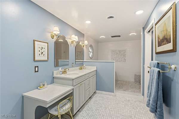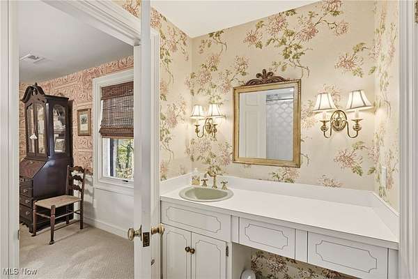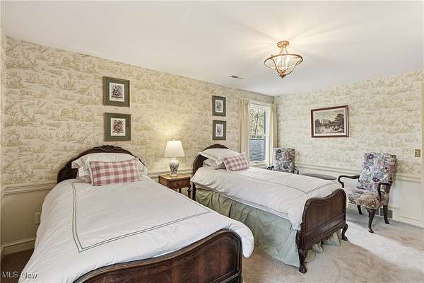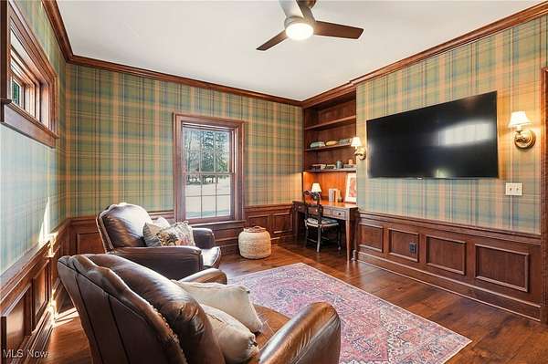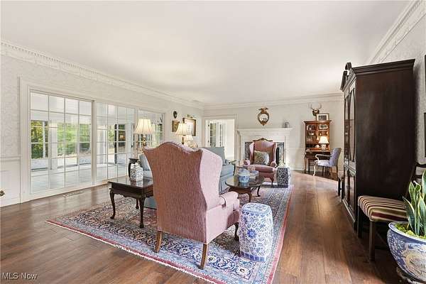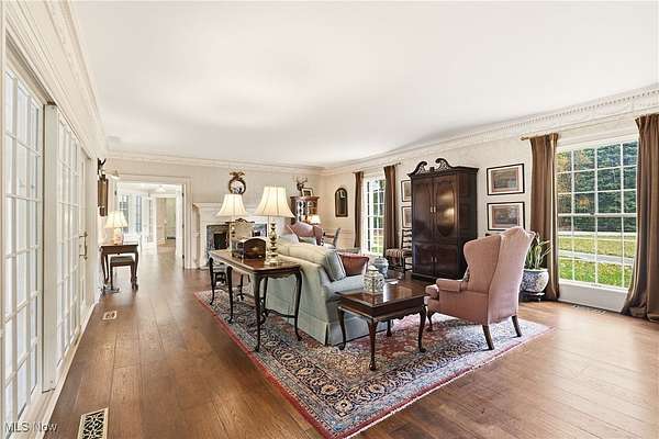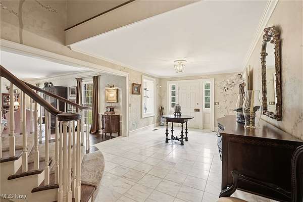 Welcome to this gorgeous and grand Waite Hill estate-a remarkable home that perfectly balances timeless elegance with thoughtful modern updates. An impressive 1,700+ square foot addition, thoughtfully designed to include a bedroom, living area, den, kitchenette, laundry &, beautifully finished bathroom was completed in 2025. A stately circular drive and two-story covered porch framed by restored columns lead to a grand entry with spiral staircase and hand-painted custom mural by local artist. Off the entry, a private office features new wood floors, custom Amish cabinetry and a hidden door to full bath. Beyond, a cozy sitting room with wood-burning fireplace opens to a three-season room with custom tile work and views of the landscaped backyard and wooded ravine. The formal dining room flows beautifully into a spacious kitchen-perfect for entertaining and everyday living. Upstairs are three generous bedrooms and two full baths, including a gracious primary suite with dual closets and stunning renovated en-suite bath featuring marble basket-weave flooring, dual vanities, new fixtures, walk-in shower and soaking tub. Additional bedrooms share Jack-and-Jill bath. The recently finished lower level provides the ultimate flex space with a 10-foot projection screen & ample room to relax or entertain. Every inch of this home showcases custom craftsmanship and care, with Amish-made woodwork, beams, cabinetry, and trim designed to seamlessly match the original architectural details. Seller updates include restored front pillars, full primary bath remodel, new pet- and stain-resistant carpeting, new wood floors in office and living room, custom tile in the sunroom, whole-home Kohler generator, Toto washlets (2), LG stacked washer/dryer, custom paneled Fisher & Paykel refrigerator, finished basement with projector & TVs, new hydro-seed in front yard & more! This extraordinary property combines luxury, comfort & craftsmanship for the perfect Waite Hill retreat.
