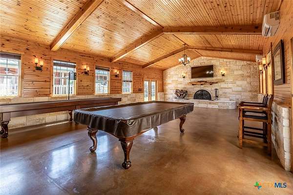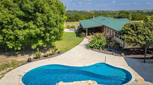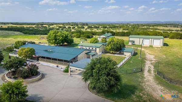 84+/- acre ranch located approximately 14 miles from Lampasas, Texas with county road frontage and gated access. The property includes a 3-bedroom, 2-bath home with office, enclosed sunroom with fireplace, and outdoor game room featuring a fireplace, pool table, and shuffleboard. Outdoor amenities include an in-ground pool, hot tub room, and landscaped outdoor living areas. Equestrian improvements include a horse barn with four stalls, wash rack, tack room, and feed/hay storage. A 75' x 55' equipment barn provides four bay doors, electricity, water, and septic hookups. Additional improvements include a workshop with office space, storage shed, cattle and horse runs, pipe fencing, and an underground storm shelter. The land features improved pasture, scattered tree cover, and a productive 23+/- acre hay field. A pond provides water for livestock and wildlife. Native wildlife including whitetail deer are common in the area. Utilities include electric service and coop water with water lines to multiple improvements. Property is well-suited for livestock, horses, recreational use, or a rural residence.