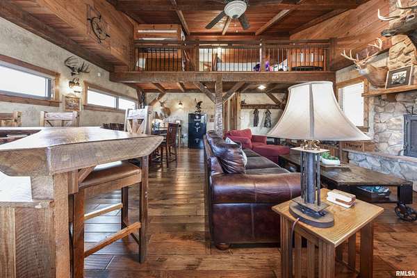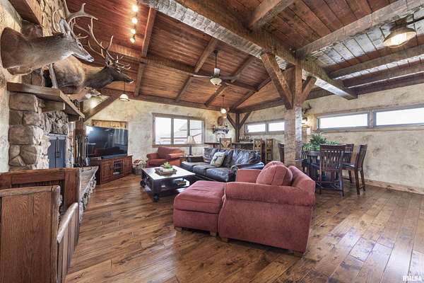 Est $8,338/moStunning setting w/ home located in center of acreage Breathtaking views out every window Pond views and loaded with fish and swim dock Beautiful Barn with multiple uses 54x34 Pasture fenced for horses/livestock Amazing outdoor living area with outdoor kitchen and fireplace Outstanding hunting 19 tillable acres & 13 acres in Hay Geo-thermal with new condenser New decking Back-up furnace Generator New Culligan water treatment system New Barn Doors Optional furniture and tractor/UTV available 2 fireplaces