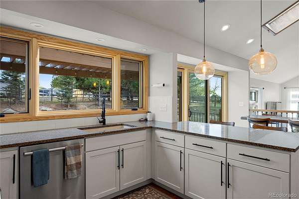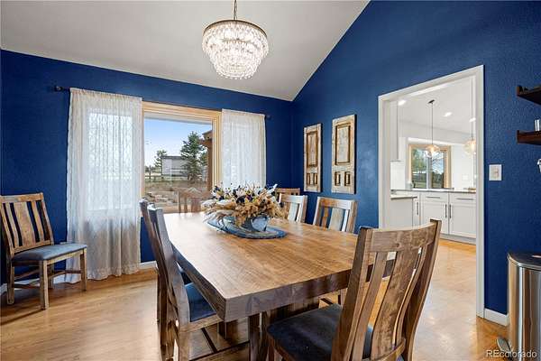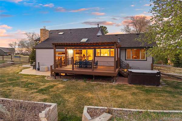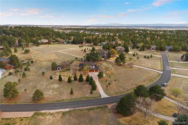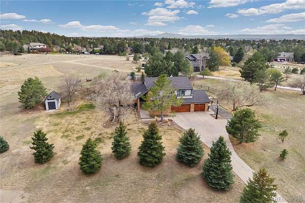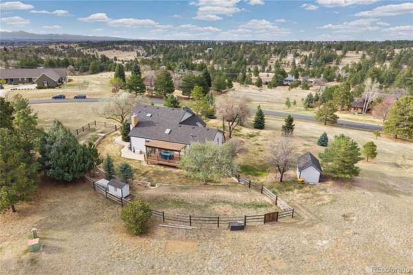 Rare opportunity to own a beautifully maintained home on two private acres with mountain views in the highly sought-after Pinery community of Parker, Colorado. Offering space, privacy, and abundant natural light, this home features vaulted ceilings, hardwood floors, and expansive windows and doors that bring the outdoors in.