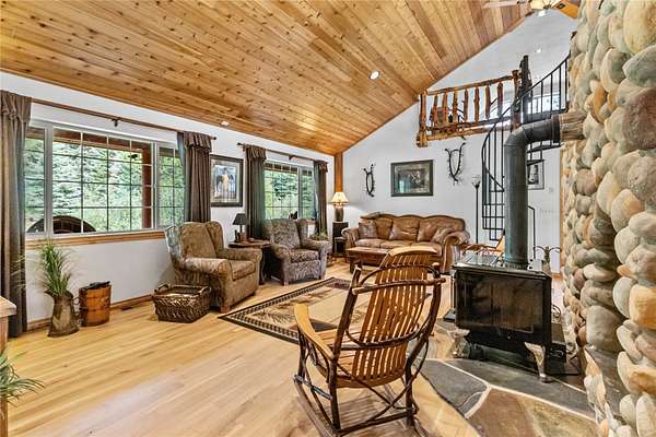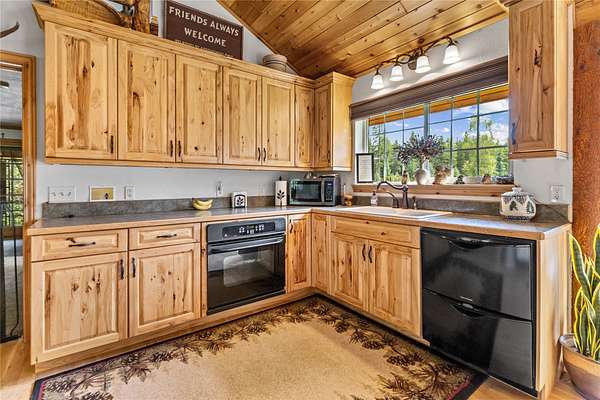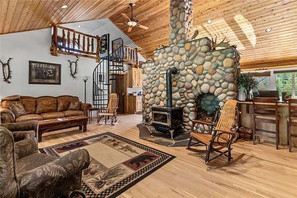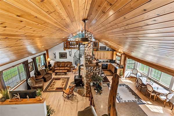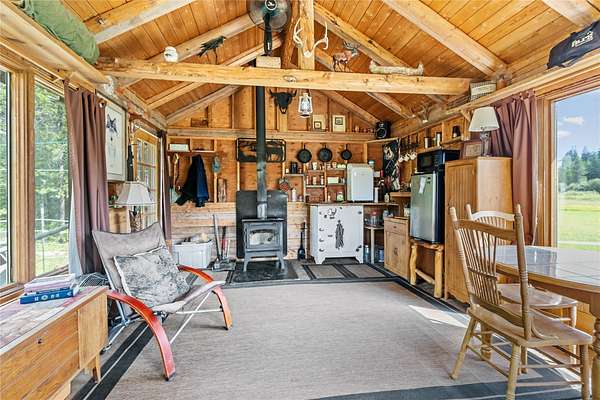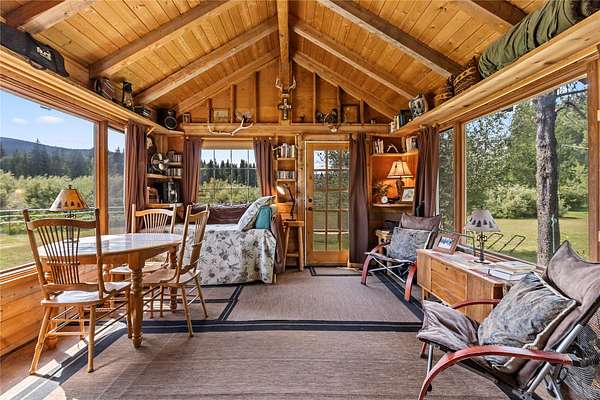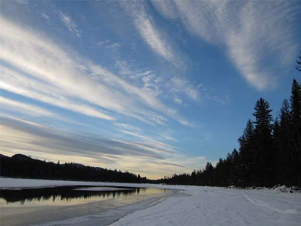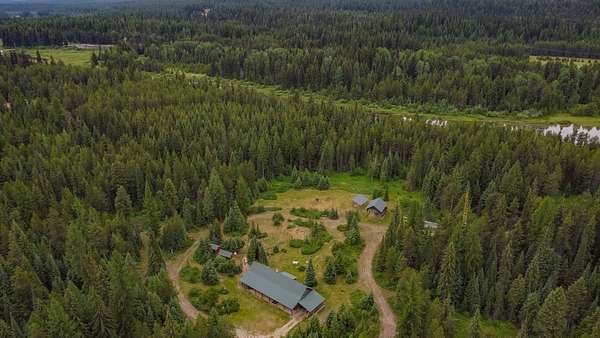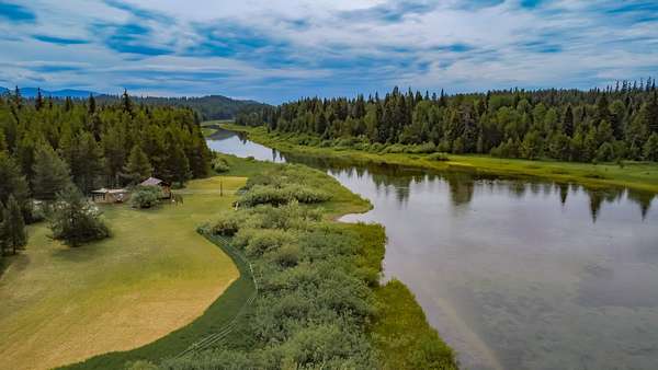 This custom built, one owner home is situated at the center of 21 secluded acres along the banks of Duck Lake, a wide bend in the Stillwater River. Tucked into the rolling hills of the greater Whitefish region the ideal location provides exceptional privacy while retaining easy access to Highway 93. Enter through a private gate to the secluded homesite in a mature forest. Step inside to a sprawling open floor plan complete with vaulted ceilings, rich handcrafted woodwork, a commanding central stone hearth, and cozy loft bedrooms. The layout boasts an oversized, main floor ensuite, an open kitchen and living room, and a bonus room perfect for guests or a home office. For added charm, a rustic river front cabin offers a unique space for camping, guests, or a peaceful retreat for creative use. Expansive windows and covered decks fill the home with natural lighting and maximize your enjoyment of the surrounding nature all year round. Walk outside to lush manicured meadows and grassy trails that meander through the forest to the river set against a stunning mountain backdrop. A gentle bend in the shoreline of the river tucks neighbors out of sight and provides a peaceful sanctuary of your very own. With over 1389 feet of river frontage this parcel is a rare find. Mostly fenced for maximum privacy it is ideal for equestrian enthusiasts and includes a hay barn, tack area, and multiple sub irrigated pastures. Bask in the sights and sounds of Montana as you watch the eagles nest in the trees and the wildlife play along the banks of the river. If you are coming to Montana to enjoy year-round outdoor recreation this location will not disappoint. With easy access to multiple lakes, backcountry downhill skiing, and groomed cross-country ski trails just a mile or two away the setting could not be more ideal. Located only 25 miles from Whitefish and Whitefish Ski Mountain, or 25 miles to Eureka and the Canadian border, this home possesses the perfect balance of seclusion and convenience. With Glacier International Airport only 45 minutes away, cross country travel is a breeze. Whether you're seeking a tranquil retreat or a base for adventures, this properties mix of solitude, beauty, and accessibility make this home a one-of-a-kind Montana haven.