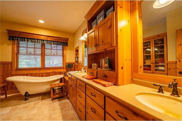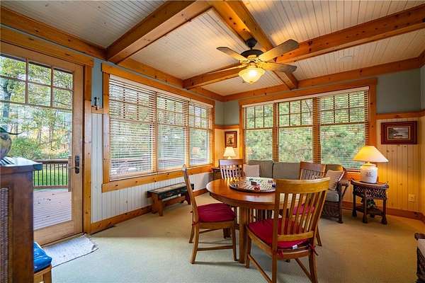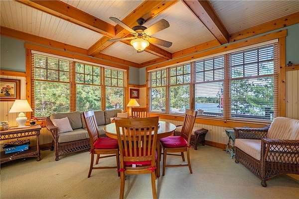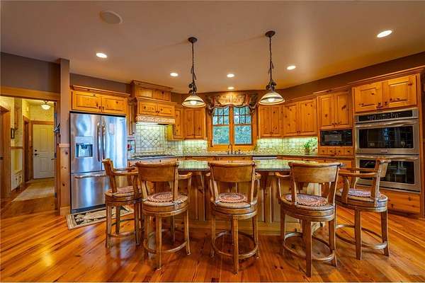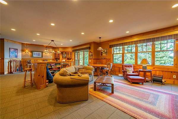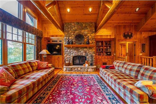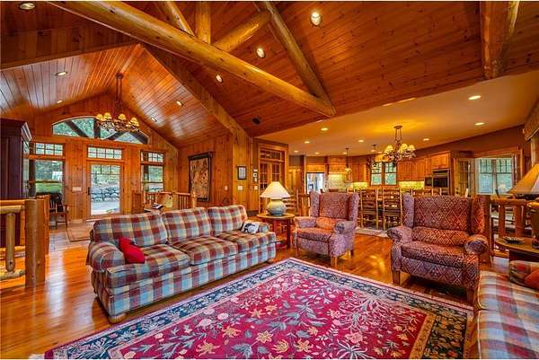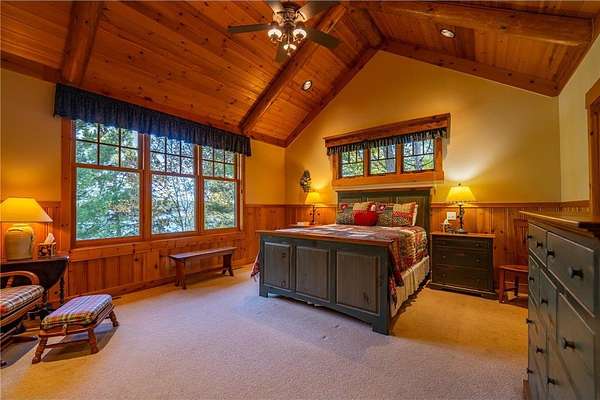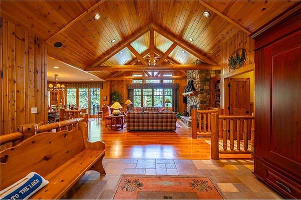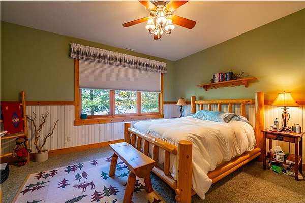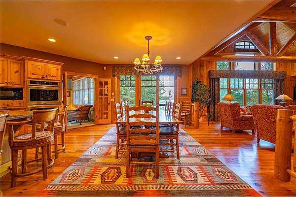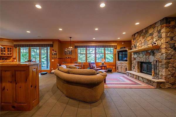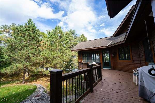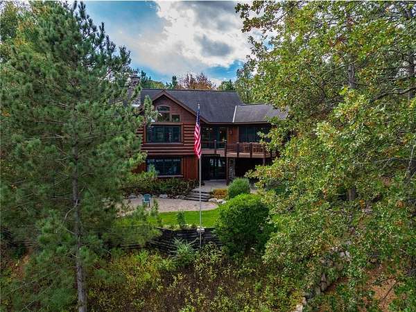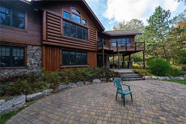Retreat to the privacy of this stunning 4-bedroom 5-bath log-sided Kimball Lake estate, which boasts 183 feet of sand frontage on the Ossawinnamakee Chain and 1.59 manicured acres that feature a sand beach, professionally landscaped displays, rock boulder walls, perennials, a huge lakeside paver deck, a lakeside paver fire pit area, stunning lake views, and mature trees. This well-appointed home has that Up North feel you are looking for and boasts an open floor plan, a wall of lakeside windows showing amazing views of the lake, hardwood floors, a vaulted knotty pine ceiling, log beam accents, and custom cabinetry throughout. The kitchen has custom cabinetry, top-of-the-line appliances, connects to the dining room, and has access to the lakeside deck. Relax after a long day in the lakeside sun room and take in beautiful lake views. The lakeside living room features a floor-to-ceiling stone masonry fireplace and has plenty of room to visit with company. The spacious lakeside main floor primary bedroom suite has a luxurious bathroom that features a claw-foot tub and new wheelchair accessible tile shower. Other features of the main floor include an amazing laundry room and an exceptional office with beautiful built-in cabinetry. You will love the extensive lakeside deck, which features Azek deck materials, as it is a great place to share a meal with family and friends or relax after a long day. The finished walkout lower level offers you a fabulous oversized family room with a stone fireplace and plenty of room for a game of cards or pool. Additional features of the lower level include a sauna, hobby room, 2 bedrooms, and 2 baths. The attached 2-stall garage offers storage and a private apartment above, giving guests their own personal space. The apartment has a private entrance and features an open concept complete with a kitchenette, dining area, living area, sleeping areas, and a full bathroom. The detached 3-stall garage offers additional storage options for your lake toys and a bunk room for additional sleeping accommodations. This home is perfect for entertaining due to the home's open concept, coupled with the lakeside decks, patios, and fire pit area, which gives you all the room you need for small to larger groups. Gather around the lakeside fire pit with family under the stars to roast marshmallows, or take advantage of activities like boating, canoeing, kayaking, and excellent fishing. A new roof is to be completed in October 2025. The property is conveniently located in the heart of Ideal Township, just minutes away from the amenities of Crosslake, Breezy Point, Ideal Corners, and Pequot Lakes, which include great restaurants, various retail shops, premier golf courses, and the Whitefish Chain. Don't miss the opportunity to create cherished family memories on the Ossawinnamakee Chain.