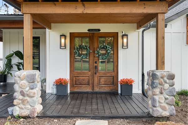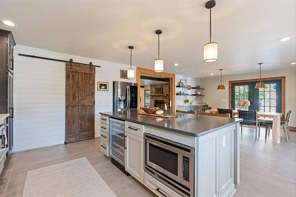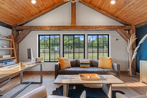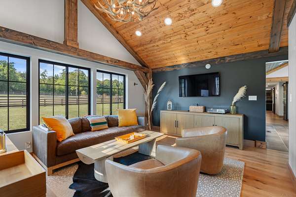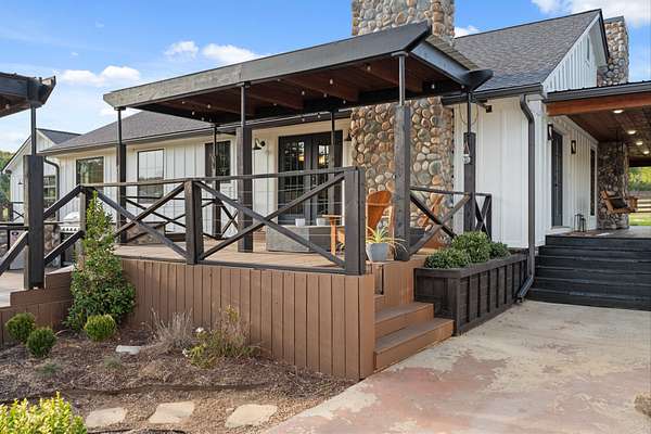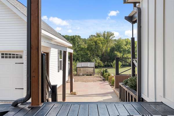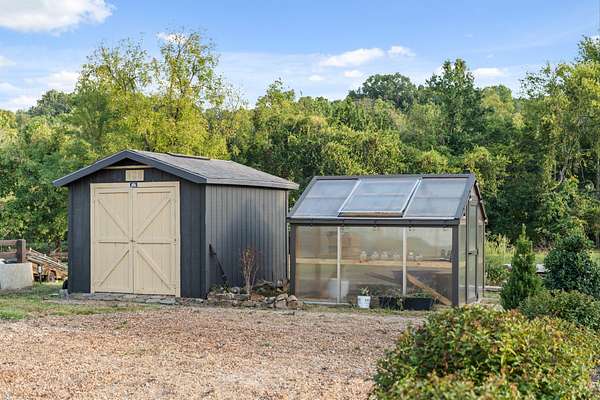 Host unforgettable gatherings in your covered outdoor kitchen and living area. Spend quiet mornings on the trails. Enjoy two fenced areas ideal for kids, pets, or animals. Tend to your greenhouse. Utilize the outbuilding for storage, hobbies, or farm essentials.