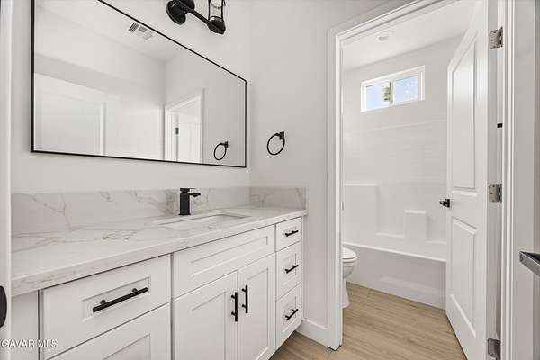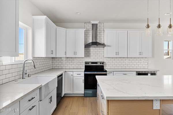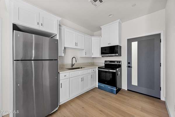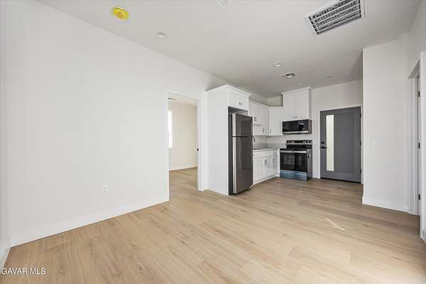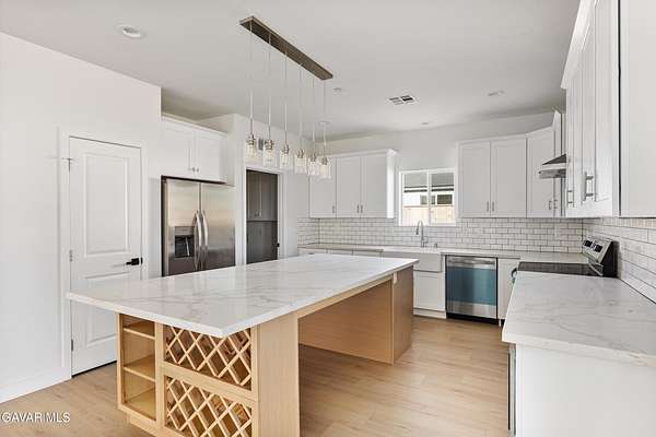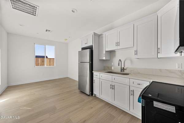 * Brand New Home w Junior ADU & Paid Solar*Brand-new construction in California City featuring a thoughtfully designed floor plan and a highly desirable junior ADU setup! The front of the home welcomes you with clean, modern landscaping that enhances the curb appeal and sets the tone for the stylish finishes found throughout.Inside, you'll find gorgeous laminate flooring throughout and a cohesive design where everything has been completed with high-end, tasteful finishes. As you enter, a private office with stylish barn doors sits to the right ideal for working from home or a versatile flex space. The home opens into a spacious living area that flows seamlessly into an impressive kitchen built for entertaining. The bar area features beautiful quartz countertops, and the giant island includes a built-in wine rack, making it both functional and a stunning focal point.The main residence offers a split-wing bedroom layout for added privacy. On the opposite side of the home, the junior ADU includes its own bedroom, bathroom, and kitchen. It also features a private exterior entrance while still maintaining direct access to the main home a perfect setup for extended family, guests, or potential rental income.The backyard is fully fenced, creating a private and secure outdoor space with endless possibilities.A beautifully upgraded, versatile property combining comfort, style, and functionality don't miss this opportunity!Some photos have been virtually staged to illustrate the property's potential. Furnishings and decor shown may not represent the home's current condition.