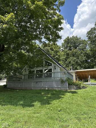 Perched atop a hill with stunning panoramic views of the Lost River and surrounding countryside, this 3-bedroom, 1-bath home sits on just under 24 acres-17 of which are heavily wooded. The home's A-frame windows showcase the beauty of nature year-round, flooding the living space with natural light. Offering TONS of potential, this property is ready for your personal touches and vision. In addition to the home, the property features two outbuildings, including a powered 3-car garage-ideal for vehicles, storage, or a workshop. The acreage offers endless opportunities for recreation, from hunting to hiking, or simply relaxing in the serenity of the woods. Just 7 minutes from French Lick Resort & Casino, this unique property is perfect as a family retreat, Airbnb getaway, or investment for hunting and golf trips. With its scenic setting, privacy, and proximity to premier entertainment and golf, this is a rare opportunity to create the retreat of your dreams.