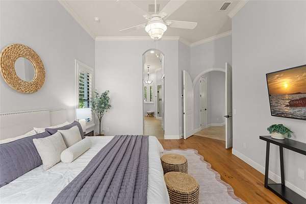 Positioned on a quiet cul-de-sac, this estate offers enhanced privacy along with an expansive driveway and turnaround for effortless arrivals and guest parking. The impressive five-car garage, along with a dedicated golf cart garage, provides exceptional space for collectors, storage, and embracing the Keene’s Pointe golf lifestyle.