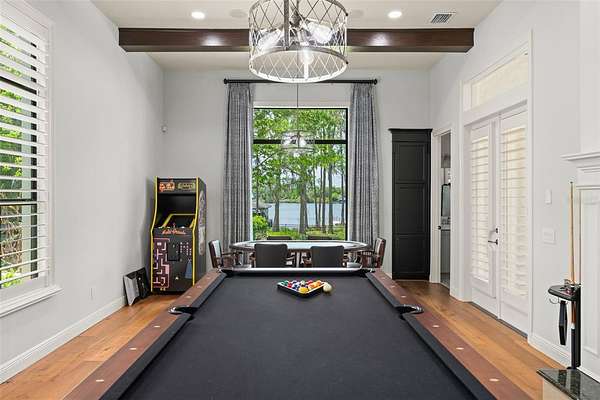 Thoughtfully designed for both everyday living and effortless entertaining, the residence features water views from multiple living spaces, a layout that balances open gathering areas with private retreats, and dedicated spaces for both relaxation and recreation.