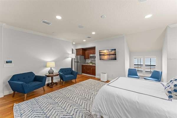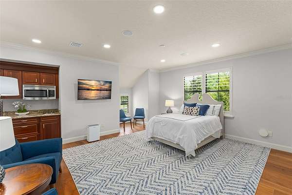 For extended stays or multi-generational living, the apartment above the detached garage offers a private, fully functional space complete with a kitchenette, full bath, walk-in closet, and laundry.
