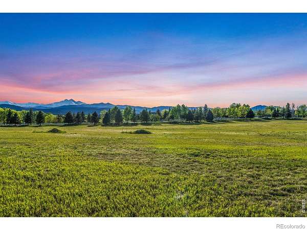 Rare opportunity to acquire one of Boulder County's premier luxury homesites in coveted Meadow Ridge. Set among exceptional estates with sweeping mountain views, this property offers a unique head start for a future custom residence. Seller previously completed substantial pre-development work including custom home plans, 2023 Boulder County Site Plan Review application (SPR-23-0011), HOA/DRC design approval, septic design engineering, and purchase of Little Thompson Water District water tap. Significant time, planning, and expense have already been invested, creating a valuable foundation for the next owner. Existing plans may offer inspiration or potential path forward, subject to buyer verification and updated approvals. Exceptional setting with privacy, views, and convenient access to Boulder, Longmont, Denver, and recreation....Owner may offer private financing on the lot to boot.
