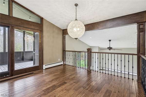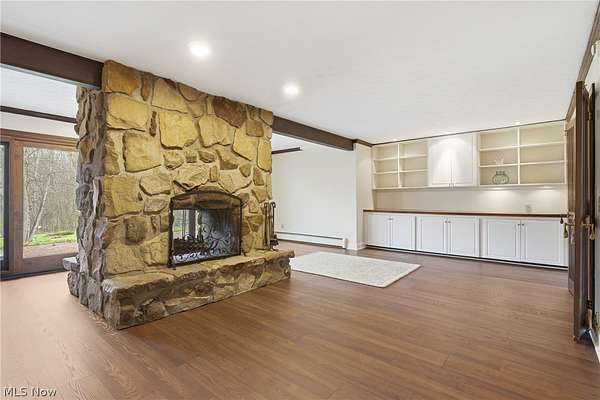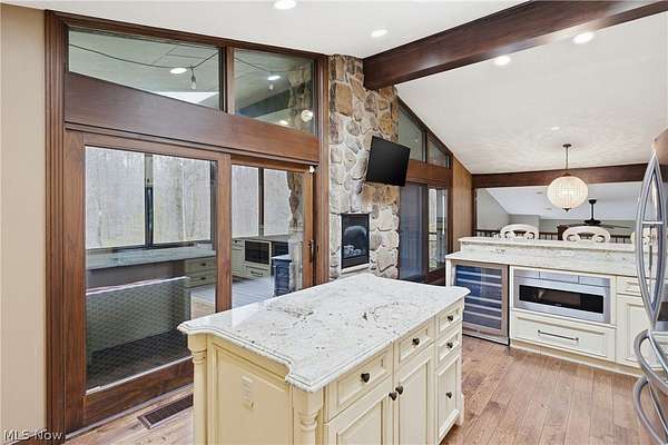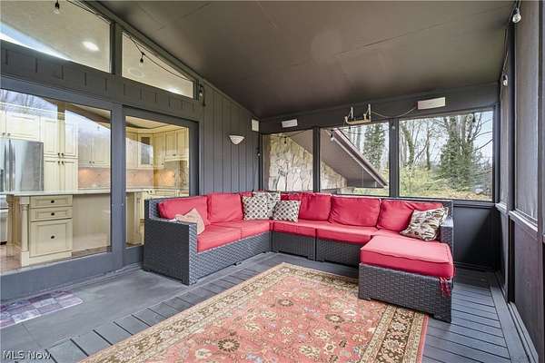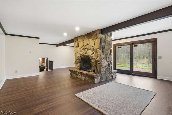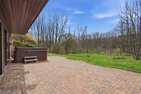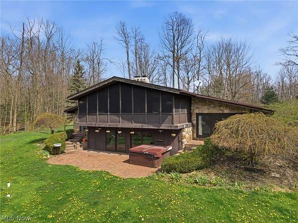 Set on 2.7 breathtaking acres, this spectacular property at 9715 Stafford Rd. offers a rare combination of privacy, picturesque views, and exceptional living spaces. Surrounded by expansive lawns and lush landscaping, every window captures serene, park-like scenery that makes this home feel like a private retreat. A welcoming foyer leads to a dramatic family room with a stunning floor-to-ceiling stone fireplace and sliding doors opening to a stone patio overlooking the grounds, complete with Jacuzzi. Just 2 steps down is a versatile space currently a home gym, perfect as a media room, recreation room, additional family room-featuring a wet bar. This level also includes a 1/2 bath, and an additional room ideal for a home office or f4th bedroom complete with a full bathroom. Up a 1/2 flight of stairs, a spacious living room with vaulted ceilings opens to an upper patio with beautiful views of the property. Another 1/2 flight up reveals the heart of the home-a gourmet chef's kitchen featuring a large center island, bar seating, stainless steel appliances, skylight, fireplace, and vaulted ceilings, flowing seamlessly into the dining area. Down the hall are 2 bedrooms with private balconies overlooking the front grounds and a beautifully updated bathroom with dual vanity. A few steps down leads to the expansive owner's suite, offering his-and-her closets, a glamour bath with jetted soaking tub, and sliding doors to a private stone patio. A vaulted screened-in porch, accessible from the kitchen and dining area, provides stunning backyard views and space for three-season relaxation. The fully fenced backyard features expansive lawn areas, garden spaces, and room for vegetable beds, creating a peaceful outdoor oasis. Additional highlights-circular drive, heated attached 2-car garage, and detached 2-car carport. Fresh, updated, and move-in ready, this extraordinary property offers estate-style living just minutes from the shops, dining, and charm of Chagrin Falls.