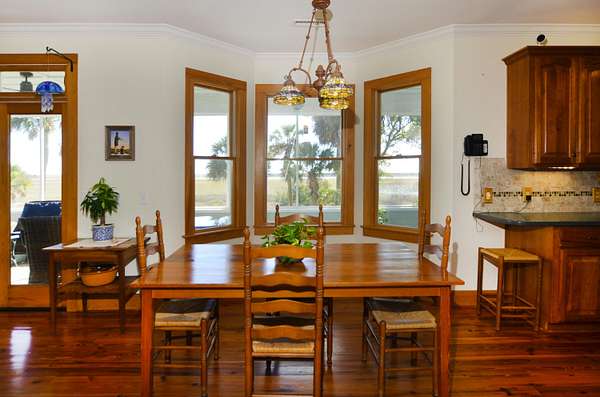 McCLELLANVILLE - Discover an extraordinary seaside country estate in the exclusive waterfront community of Tibwin Farms, where miles of breathtaking, uninterrupted vistas stretch across the protected beauty of the Cape Romain National Wildlife Refuge. From most every room in the home--and from the inviting screened porch--you'll enjoy ever-changing panoramic views that include expansive salt marshes, tidal creeks, distant barrier islands, and the iconic Cape Romain Lighthouse glowing on the horizon just two miles away. This charming three-bedroom, two-and-a-half-bath cottage captures the very essence of refined Lowcountry living.Set on an impressive 22 serene acres, the property is surrounded by majestic moss-draped live oaks, shimmering salt ponds, palmettos, and lush green lawns. Built by one of the area's premier restoration builders as his personal residence, the home reflects exceptional craftsmanship, thoughtful design, and timeless coastal elegance. A full-length Southern-style front porch welcomes you with peaceful pond views and offers a classic spot to relax with family and friends, sweet tea in hand. Inside, the front foyer opens to rich heart-pine floors that flow throughout the home, setting a warm, inviting tone. Just off the hall is a convenient powder room. The cozy family room, anchored by a masonry wood-burning fireplace, is perfectly positioned to take in the surrounding landscape and water views. Adjacent, the spacious screened porch becomes a favorite gathering place, ideal for morning coffee as the sun rises over the marsh or evening conversations as shrimp boats return at dusk. The well-appointed galley kitchen is a chef's delight, featuring custom cypress cabinetry, generous counter space, and stainless steel appliances. A wide hallway leads to a large laundry room with ample workspace, and beyond, a sun-filled primary suite offering sweeping views, generous proportions, and a beautifully appointed private bath, an ideal retreat at day's end. Upstairs, two additional spacious bedrooms, a central full bath, and a private study provide comfortable accommodations for guests or family, all thoughtfully designed to capture natural light and tranquil scenery. The outdoor living experience is equally exceptional. Wander shaded paths beneath centuries-old live oaks, enjoy nature walks through your own private acreage, or gather in the ground-level sitting area, perfect for oyster roasts, Lowcountry boils, and evenings under the stars. A potting area with running water and work surfaces complements the vegetable garden, grape arbor, and assorted fruit trees, offering the pleasures of a true coastal homestead. Completing this remarkable estate is a custom barn with ample space for boats, equipment, and hobbies, featuring water and power, plus a dedicated workshop area. If you've been searching for a rare Lowcountry retreat offering privacy, protected views, iconic coastal scenery, and unmatched natural beauty, without sacrificing proximity to the historic village of McClellanville, this property stands alone. Schedule your private showing today and experience coastal Carolina living at its finest!