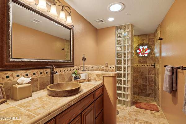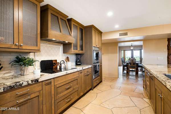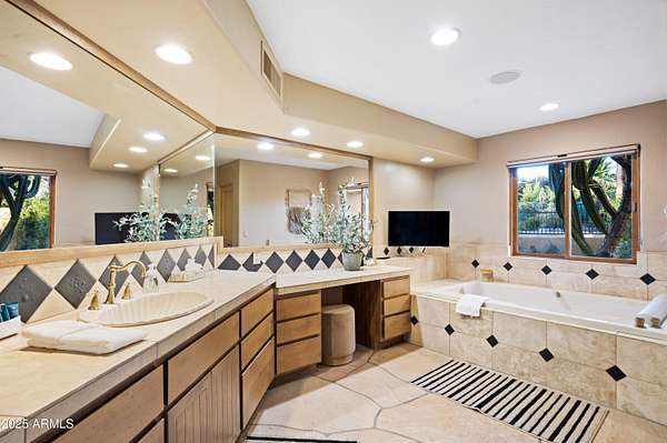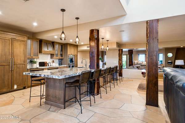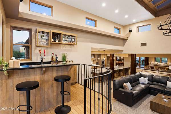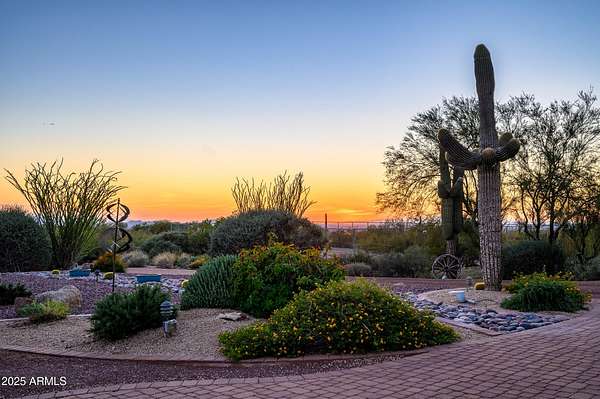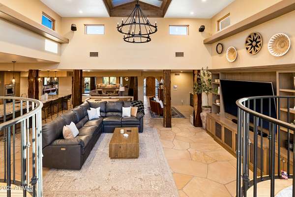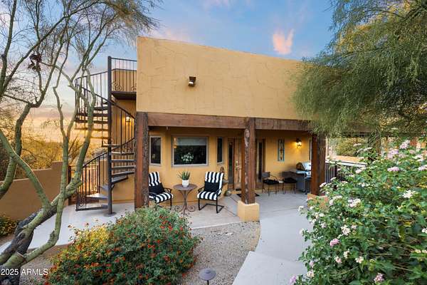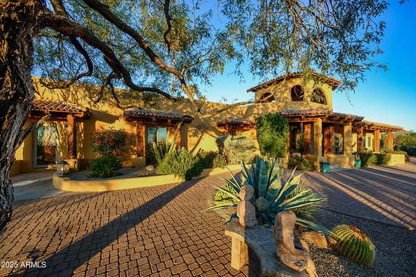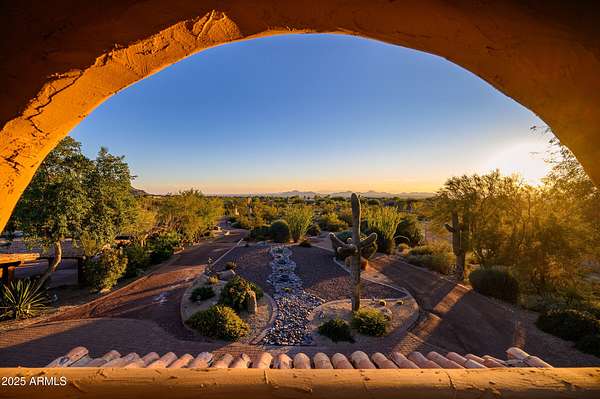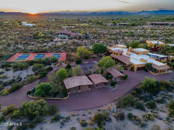 Seller Open to Creative Financing with right down payment and terms! Experience resort-style living today on 5 private acres nestled in the breathtaking mountains of North Scottsdale-no HOA! Welcome to Tranquility Trail-your secluded haven offering unparalleled privacy, stunning views, and horse-friendly property. Enjoy meticulously maintained desert landscaping, a spacious 2-car garage, and 6 additional covered carport spaces (4 at the front and 2 by the guest house). For added recreation, indulge in your own private fenced-in sport court featuring a half-basketball court and 3 pickleball courts, all surrounded by panoramic mountain vistas. Several outdoor covered patios and scenic overlooks offer the perfect setting to take in the natural beauty that surrounds you. Step inside to discover an expansive open floor plan, highlighted by custom wood beams that frame the vast living area. The chef's kitchen, beautifully updated in 2019 by Argue Custom Homes, is a culinary masterpiece, featuring a stunning 16-foot Brazilian Tourmaline island that comfortably seats up to 10 guests. Equipped with high-end Thermador appliances, custom cabinetry, and a steam oven, this kitchen is both functional and elegant. The island also boasts a built-in microwave under the countertop, and the spacious walk-in pantry includes custom cabinets, a washer, and dryer. A full wet bar, just off the kitchen and living room, adds convenience with a bar top and seating area. The main house offers 5 bedrooms, including a luxurious Master Suite and a separate guest en-suite. The property includes two private guest living areasone within the main house and the other in the guest house. The expansive main living area is flooded with natural light, thanks to large windows that illuminate the formal dining room, valley room, formal living room, and family room. Both the valley room and sitting room feature cozy fireplaces. This open-concept great room is an entertainer's dream, yet still offers the intimate ambiance needed for cozy movie nights. The Master Suite is a true retreat, featuring two walk-in closets, a dual-seated bathtub, and a spacious shower with multiple shower heads. Enjoy your own private fireplace, sitting area, and a wraparound porch that provides breathtaking desert viewsperfect for watching spectacular sunsets. Step outside to your personal oasis. The backyard boasts a heated pool, an outdoor kitchen with panoramic mountain views, a grassy area perfect for relaxation or play, and a convenient half-bath off the kitchen so you don't have to venture inside. With no HOA, this property is ideal as a peaceful home base in the Northeast Valley, offering close proximity to all of Scottsdale's amenities. It also presents an excellent investment opportunity, whether for short-term or long-term rentals, corporate events, weddings, or private gatherings. This is truly a piece of paradisedon't miss the chance to make it yours!