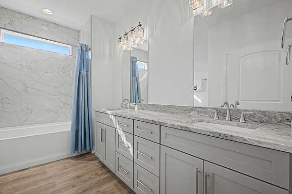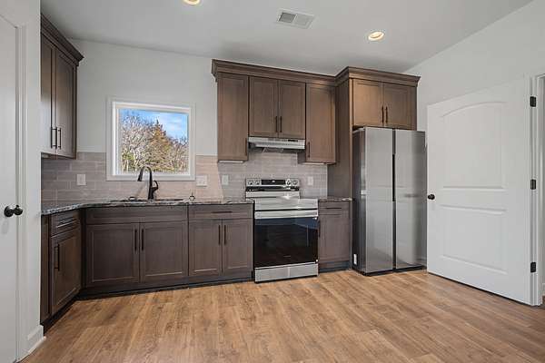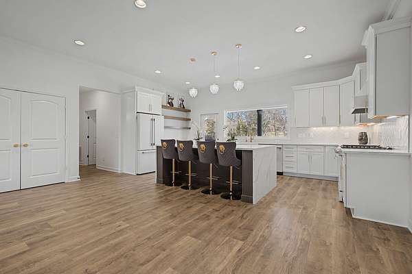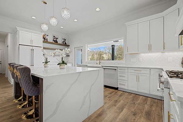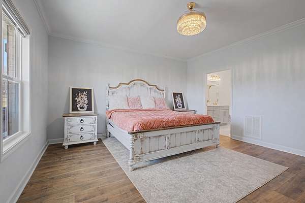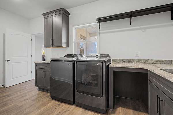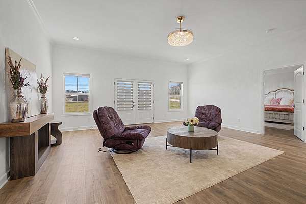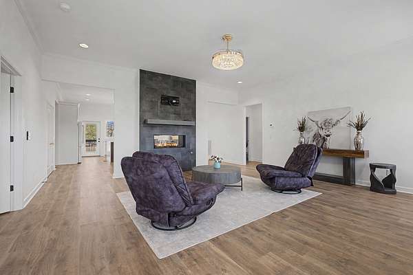 Est $4,895/moBeautiful custom build on a large lot out in the country. Spacious master suite with double sinks, quartz counters. Separate apartment or in-law suite w/kitchen, living rm, bedroom and bath. Blinds throughout, open floor plan, airy and light, see through fireplace in living area and kitchen, quartz kitchen cabinets and sink, granite countertops in other bathrooms laminate and tile floors. Covered front and back porches. Safe room in garage.