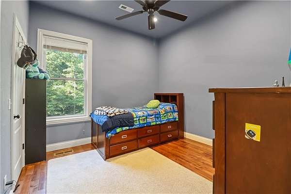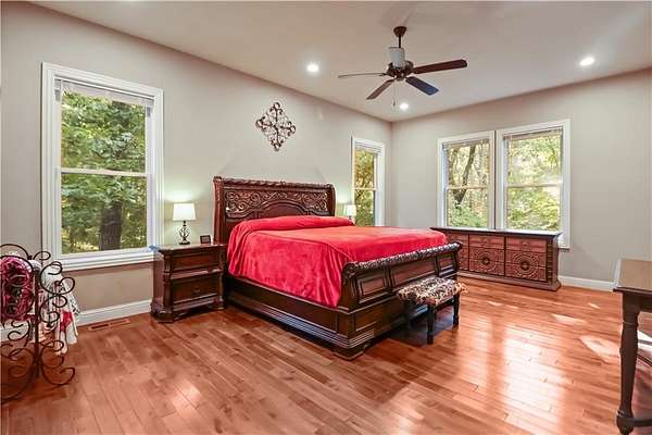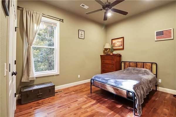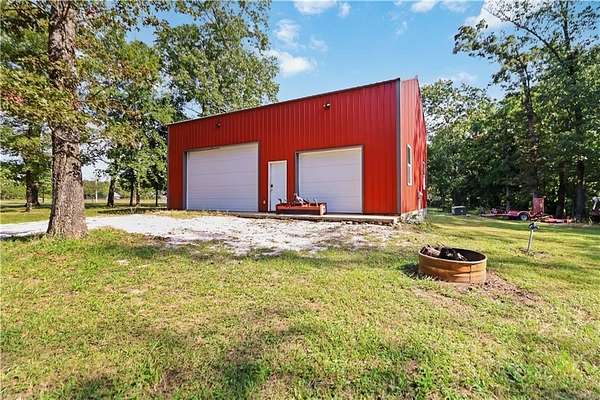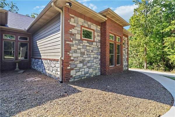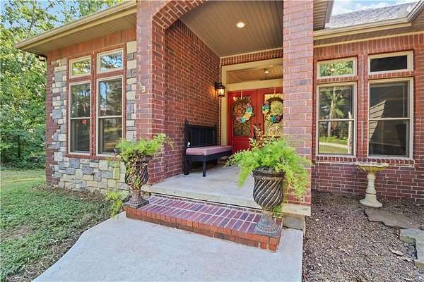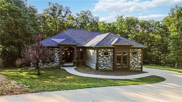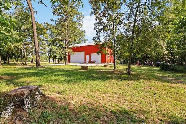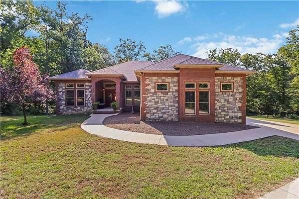 Discover the perfect blend of privacy, space, and convenience with this custom-built home tucked away on almost 8 acres--just 15 minutes from Downtown Bentonville and near the area's bike trails. This one-level home offers 4 bedrooms, 2 full baths, and a home office for work or study. A bonus room and safe room in the basement (with private exterior access) bonus room sq. ft. included in heated/cooled space--ideal for hobbies, storage, or a retreat. Inside, you'll find custom wood cabinets and solid prefinished wood floors ready for refinishing. Step outside to the covered deck and enjoy views of the wooded property. The land is perfect for a hobby farm, with fruit trees, grape vines, gardens, and flowers at the front. A 30x40 barn provides ample storage and workspace. A creek runs through the property--once home to a private shooting range. Neighborhood covenants allow one home per 5 acres, preserving the country setting while keeping you close to Bentonville.