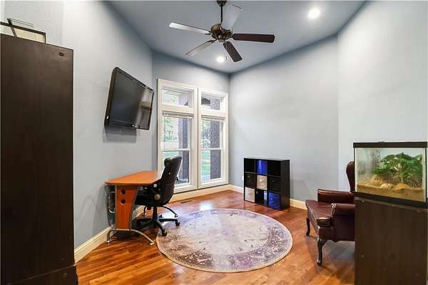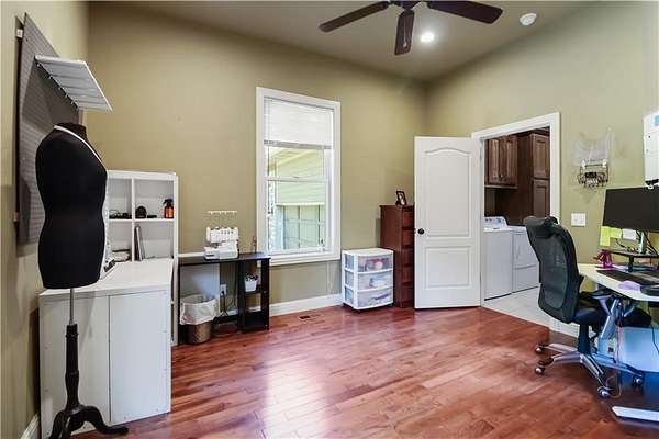 - Attic Storage, Blinds, Ceiling Fans, Drapes, Eat-in-Kitchen, Programmable Thermostat, Quartz Counters, Split Floor Plan, Walk-In Closets, Wired For Sound