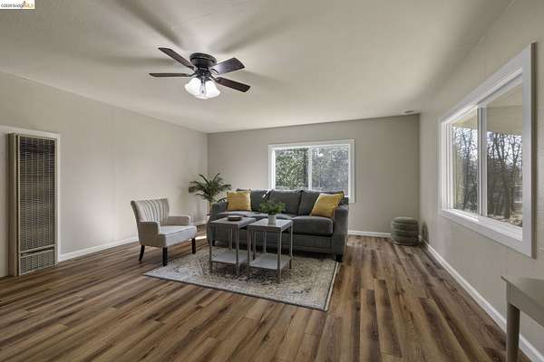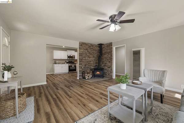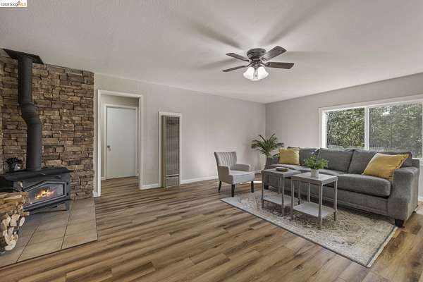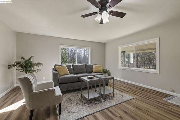 COUNTRY ESTATE on just over 4 acres with the Stanislaus National Forest in your backyard. This TURNKEY single level home has been tastefully updated with new flooring, remodeled kitchen & bathrooms and new coat of interior and exterior paint. The main living room is generously sized with a wood stove and wall heat. 2 guest bedrooms are just off this room with convenient access to the hall bathroom with a tub/shower. The kitchen features new cabinets, counters and appliances with a dine-in seating area. BONUS family room is just a few steps down from the kitchen complete with a fireplace and dreamy sunroom. The primary suite is spacious with 9' ceilings, 2 closets and built in cabinets. Completing the home is the primary bathroom with a stall shower and mudroom/laundry room with exterior access. 4-H ready, this property is improved with both large and small fenced pens with water troughs. As you explore the grounds you will find a workshop within the garage, water storage tank and wandering trails leading to the forest land. This home is situated in Greeley Hill, a quaint rural community with nearby lakes and charming historical towns within 30 minutes of here. Enjoy a scenic drive to and from with the snow peak mountains and valley views.