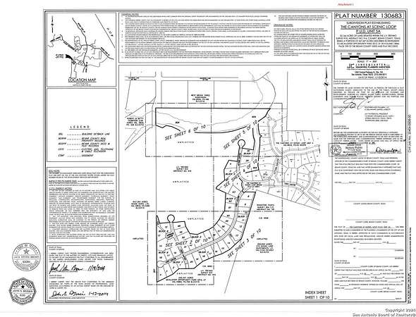 Bring your builder to this Premium home site in the Canyons of Scenic Loop. Panoramic views on over a half acre lot. Breath taking views with mature trees. Underground utilities and Gated access. Northside schools. Nearby shopping like La Cantera, golfing, The Rim, Fiesta Texas and much more.