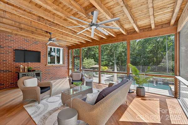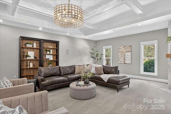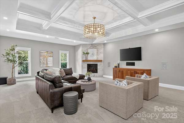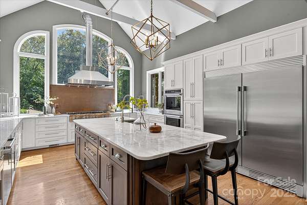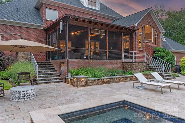 Welcome to your private retreat - a stunning luxury estate on over 2 acres and surrounded by undisturbed nature. Offering nearly 8,000 square feet of refined living space this home is in prestigious, gated Sedgefield. From the moment you arrive, the circular driveway, manicured lawn, and stately curb appeal set the tone. The main level spans over 3,500 square feet, flowing effortlessly onto the screened porch and outdoor entertaining areas - perfect for large gatherings, sporting events, or quiet relaxation. Originally built in 2000 and fully remodeled in 2018, this home now includes a show-stopping oversized heated saltwater pool and a kitchen that is every chef's dream. Gourmet kitchen with commercial-grade appliances, large scullery, and endless natural light! Primary Suite on main level and upper level - both with spa baths and custom closets. Upstairs includes 2 additional bedrooms with ensuites and a spacious loft. 3rd floor is a private bedroom with full bath. Basement level offers pool bath, recreational spaces and endless storage. 4-car oversized garage is constructed for lifts - ideal for the car collector! This home was built for both entertaining and everyday luxury. Whether you're relaxing poolside, hosting a crowd, or enjoying a quiet evening at home, every square inch of this estate reflects quality and thoughtful design. Top rated Marvin Ridge Schools!