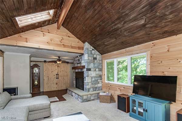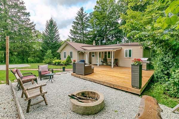 Serene Ranch living on over 2 acres in Chardon Township located on a private drive. This home offers 2 bedrooms and 2 full bathrooms with an optional 3rd bedroom or additional living space. Upon entering you are greeted by the updated eat in kitchen that houses hook ups for first floor laundry. The full guest bathroom is just adjacent to one of the bedrooms, and the second bedroom has a full en suite. The recently added vaulted living room has scenic outdoor views and is centered around your wood burning fireplace. Plenty of outdoor space to relax on your new deck. The detached outbuilding has a walk up second floor for additional storage. This property also comes with an additional 1+ acre lot! Enjoy all this home has to offer with being located just minutes from the Historic Chardon square and County Parks!