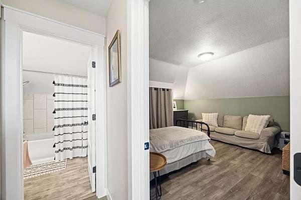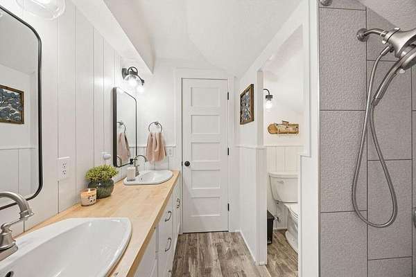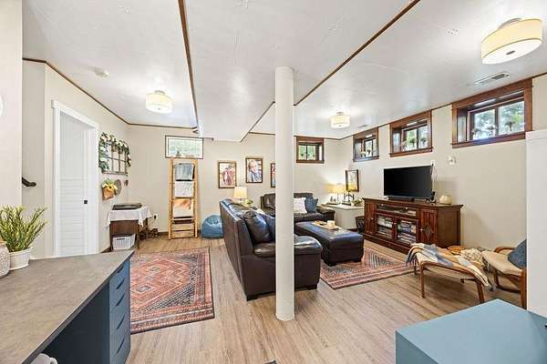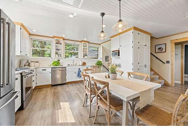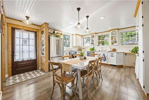 An enclosed entryway connects to the heated attached garage—perfect for storage and keeping things organized year-round. Outside, you’ll find a detached heated shop, formerly a pottery studio, ready to become whatever you envision—workshop, studio, gym, or hobby space.