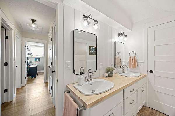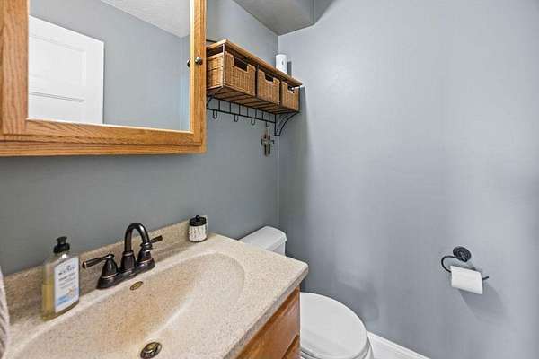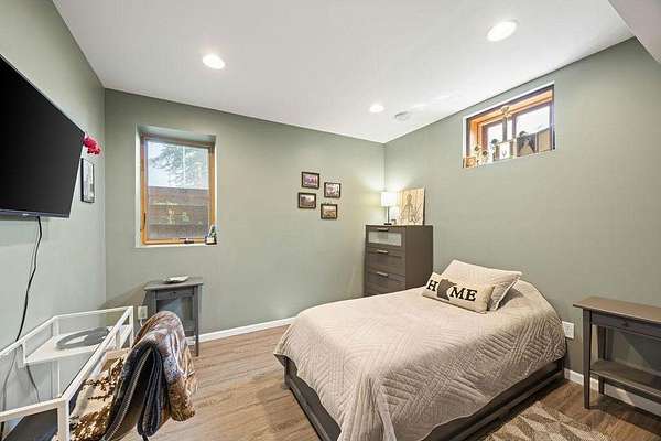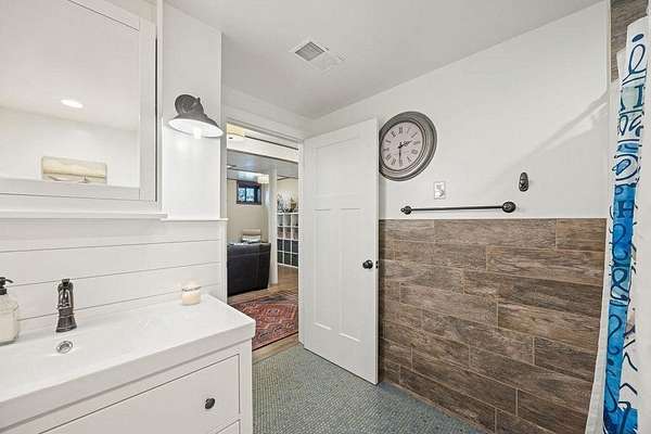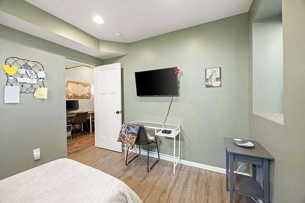 Inside, you’ll find four spacious bedrooms plus an additional non-conforming bedroom—ideal for a home office, craft room, or flex space. Upstairs features a beautifully remodeled full bathroom with dual sinks and plenty of space to move. The fully finished basement includes its own bedroom and bath, offering flexibility for guests or multi-generational living.