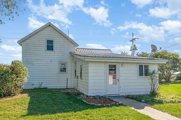 Over 32 acres of land with this 4 bedroom, 1 bath home on a full unfinished basement. This property also features a 30X30 barn, a 30X40 pole building with 2 garage doors and a shed. The home has many updates including new vinyl flooring, a brand new bathroom, fresh paint and a dry lower level. PROPERTY INFO: Potential building sites, mostly tillable, great investment potential with road frontage on CR 250 N & CR 100 E., lots of ornamental plants, trees and bushes.