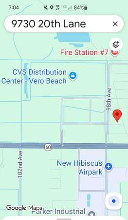 From 60 East of Vero Beach, straight to 95 underpass, Right on 98th Avenue, Right on 2nd street 20th Lane, go straight in, vacant LOT on the LEFT...