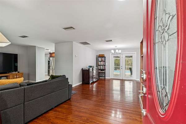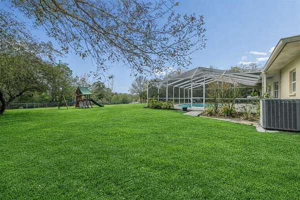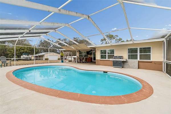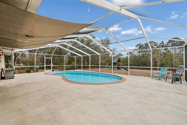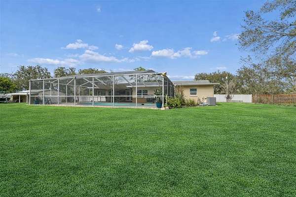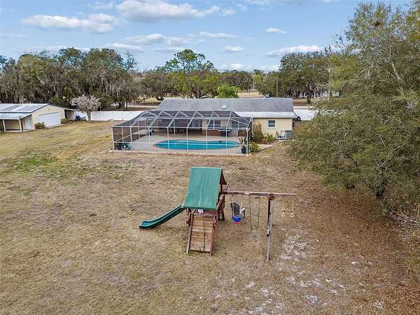 Golden Acres Lakefront Pool Home on 1.76 Acres with Detached Workshop!!! Discover the perfect blend of space, privacy, and waterfront living in highly desirable Golden Acres. This 3 bedroom, 3.5 bath home sits on 1.76 fully fenced acres with a private dock, offering peaceful lake views and room for animals, outdoor hobbies, or simply wide-open space. The screened-in pool creates a relaxing backyard retreat, while the 2-car attached garage and separate detached garage/workshop provide exceptional flexibility for RV storage, boats, equipment, or creative projects. Whether you're looking for room to roam, space to garden, or a property that supports a more self-sufficient lifestyle, this one delivers. A rare opportunity to own lakefront acreage in one of the area's most established communities. (ROOF-2014)(A/C-2008)(W/H-2015)