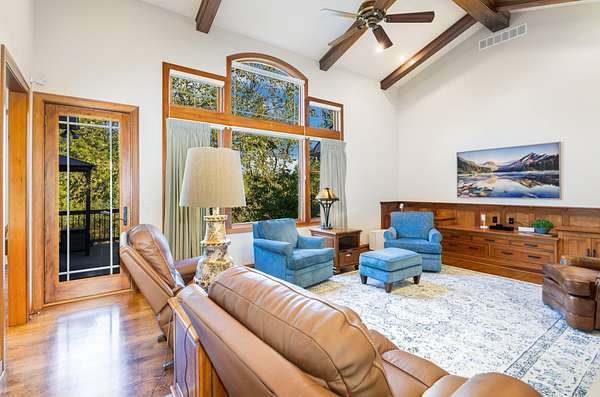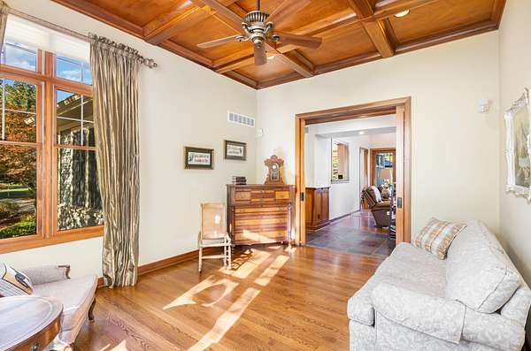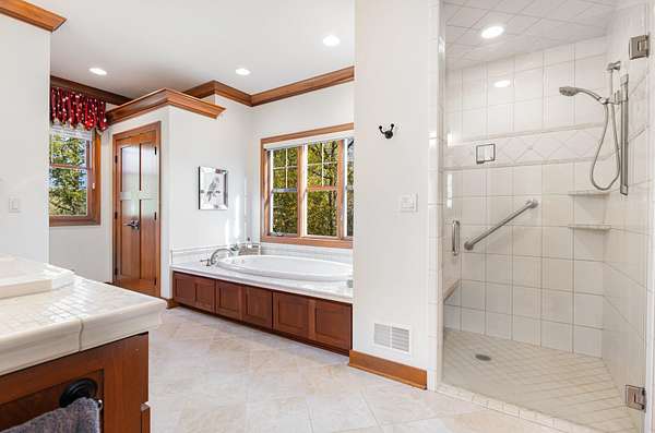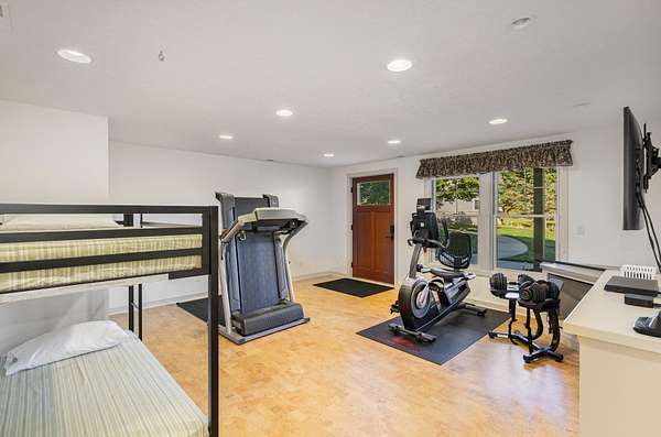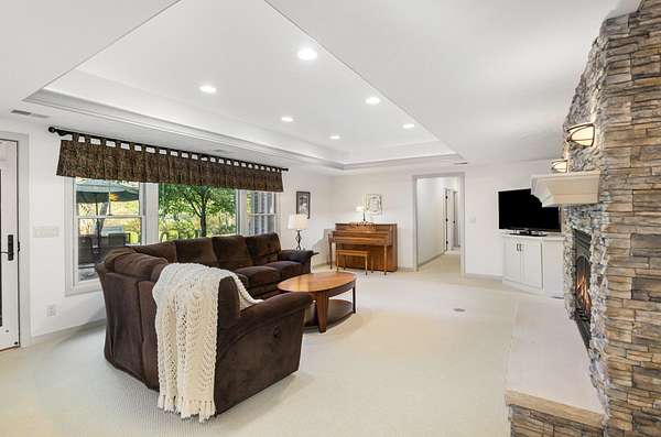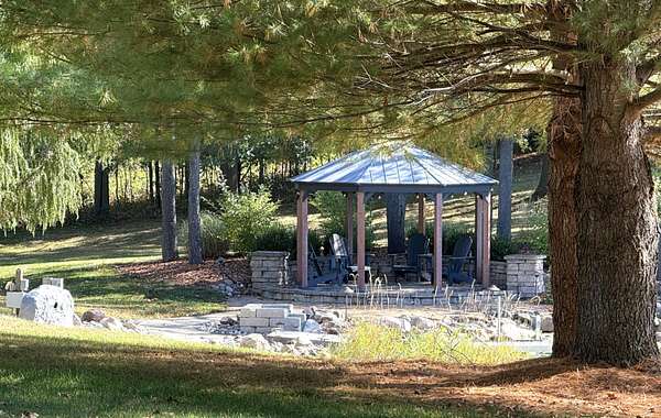 This unique high-end custom home showcases exceptional craftsmanship w/ rich hardwood floors, detailed trim, solid craftsman doors, decorative wainscoting, & coffered ceilings. The built-in shelving & library highlight the artistry throughout. The main-level office offers flexibility for use as an additional bedroom. The expansive chef's kitchen offers Sub-Zero & Wolf appliances, solid wood cabinetry, granite counters, & decorative tile backsplash. The walkout basement is designed as a full living space for entertaining. Enjoy beautiful views of your retreat, from the composite deck or patio which adds space for gatherings, relaxation & taking in the lush landscape. The outdoors of the property is designed for both function & leisure with a large custom play structure, stocked pond with four bubblers, fountain, and gazebo. Truly a one-of-a-kind property blending timeless style and modern amenities Supplemental Mechanical & Property Features This property offers extensive mechanical updates and unique pond enhancements for ease of ownership. Wells & Water Systems: The home features a constant-pressure well with a new control panel (2025) and a separate well dedicated to the pond. Pond & Fountain Systems: The pond was professionally dug and improved by Michigan Ponds, who also installed a new pump system for the bubblers. The fountain system, though not currently installed, connects to the black PVC pipe near the rowboat for future hookup. The pond is stocked with koi, bluegill, and sunfish. The walkway, gazebo, and lighting were completed approximately four years ago. The pond includes an overflow pipe designed to protect fish by draining into the marsh and a fill pipe near the rowboat for adding water with a natural rock waterfall effect if levels run low. Decorative landscape lighting with multiple timer options surrounds the pond and walkways. Heating & Cooling: There are two furnaces, each with Wi-Fi thermostats. The basement furnace includes four zones, and the upstairs furnace includes three zones. Lammers professionally clean and inspect both furnaces annually. The home also has two central air units, a whole-house steam humidifier, and two water heaters. Additional Systems: Features include a Generac generator (2023), a sprinkler system (not used this season), a whole-home sound system wired to a Bose receiver in the living room, and night lights throughout the foyer and hallways with dusk-to-dawn/timer settings. A Treager Grill with its own pergola. Interior Extras: The downstairs wet bar includes a refrigerator and a garbage disposal. The recreation room with 2nd fireplace, exercise room, utility room with an additional laundry area, and lots of extra storage space. Second Garage/Carriage House (Built 2006, 32'x32'): This structure features a propane furnace, pull-down storage, a Steel City woodworking air filtration system, wall slat boards for tools, two 9' overhead doors with openers, and a pull-down stairway for overhead storage. Attached Garage: Has electric heat and pull-down stairs with overhead storage. Septic & Drainage: The septic system includes a diverter valve. The pump, located behind the vinyl privacy fence, pumps to the drainfield on the hill near the carriage house. Landscaping: The lush, manicured grounds showcase professional landscape design and exceptional care. Many trees are planted throughout the property, including tamarack pines, river birch, and cedar. The Desk in the office stays, the dock stays, the kayak dock is negotiable.