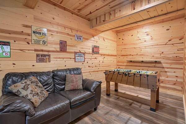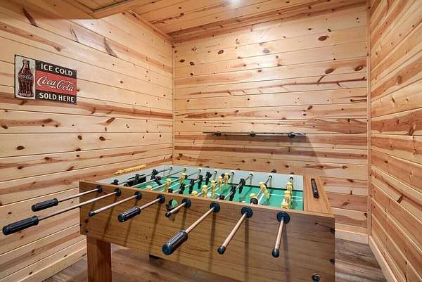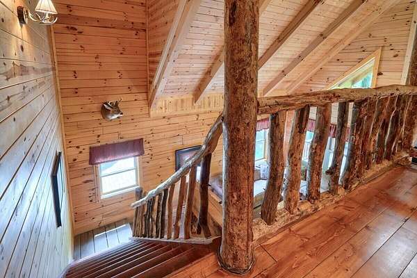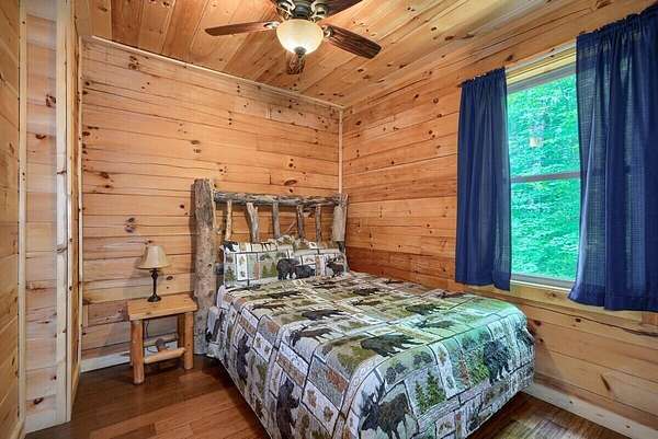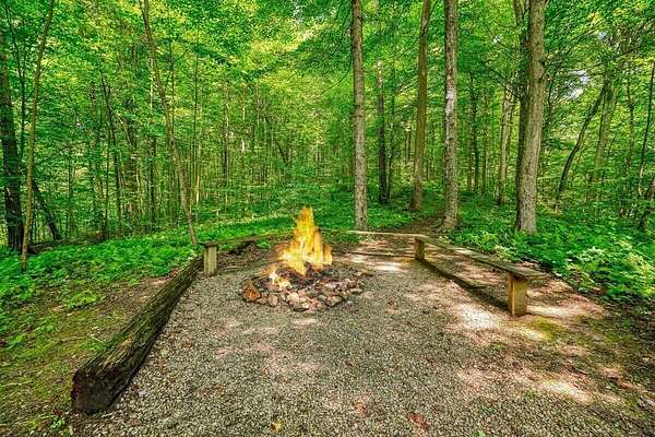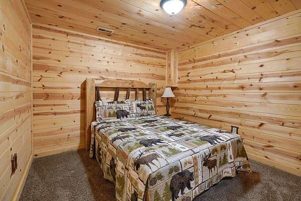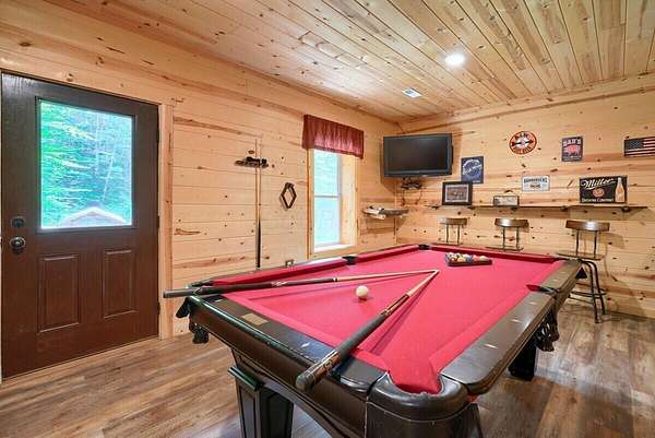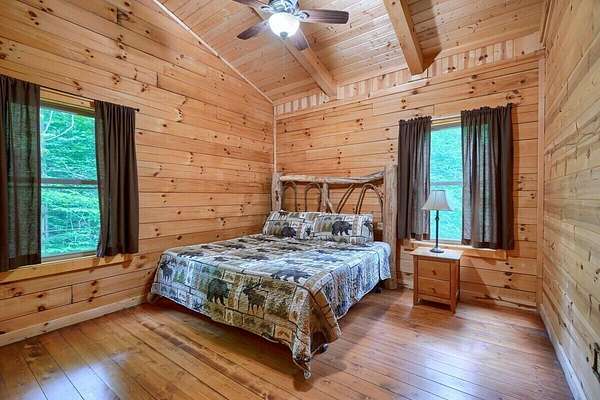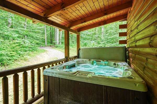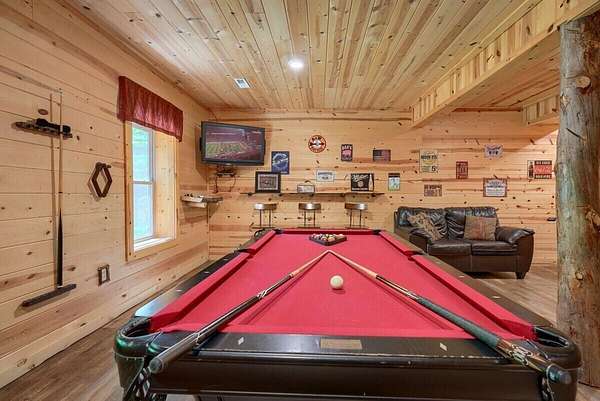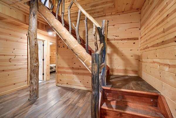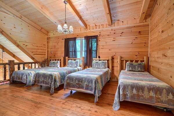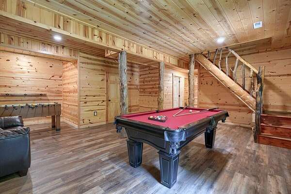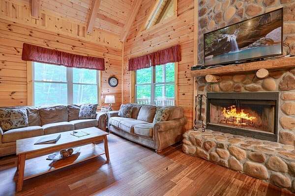 Welcome to Twin Creeks, a fully furnished five bedroom cabin set on eight private wooded acres with a scenic creekside setting and a charming covered bridge entry. This turnkey property offers three levels of finished living space, multiple king suites, an open main living area with a stone fireplace, and a lower level recreation room ideal for group stays. The home comfortably sleeps up to sixteen guests and provides a well planned layout for gatherings, retreats, or multi family use. Outdoor living spaces include covered porches, wooded views in every direction, and direct access to the property's two natural creeks. The setting is quiet and secluded with no close neighbors, offering true privacy. Twin Creeks operates as a high performing short term rental with a strong rental history and excellent year round demand. The sale includes all furnishings, providing a seamless transition for personal use or continued rental operation.