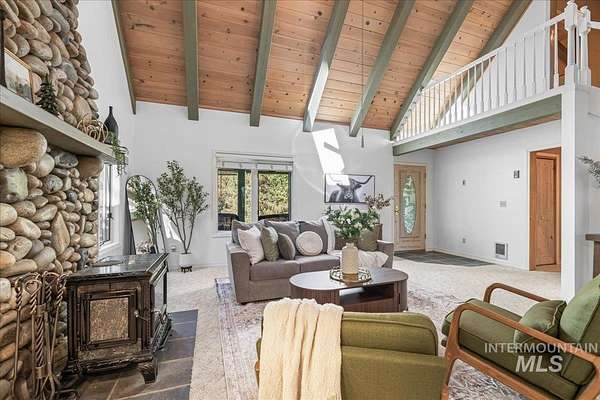 YOUR MOUNTAIN HIDEAWAY--Just 1 hour from Boise limits and 45 minutes from Tamarack! Nestled on 2.5 wooded acres in Smith's Ferry, this cabin is the perfect place for relaxation & adventure. Enjoy instant access to dirt bike, side by side & snowmobile trails, as well as whitewater rafting on the Cabarton stretch (takeout w/in walking distance of the house). Daily wildlife visitors include: Mule & Whitetail Deer, Elk, Turkey & Red Fox, plus enjoy seasonal foraging of huckleberries & morel mushrooms! Vaulted ceilings, exposed beams & natural light fills the home, with new, bright paint throughout. The huge kitchen comes equipped with all of the modern day conveniences, plus an electric stove w/ a wood-burning stove top ensures you can enjoy a warm meal no matter the weather! The root cellar provides extra storage for homestead-style living or spare adventure gear. Step onto the covered front porch to take in the mountain views, or wander down to the nearby Payette River, just a 5 minute walk away. The large shop is ready for all your outdoor gear, or use the space as an additional hang-out area year round. A convenient circular driveway makes access easy for all types of vehicles. This property has room for everyone, with ample space for RVs & camping on the property. With privacy, character, & space to breathe, this cabin is an ideal retreat for year-round mountain living.