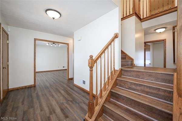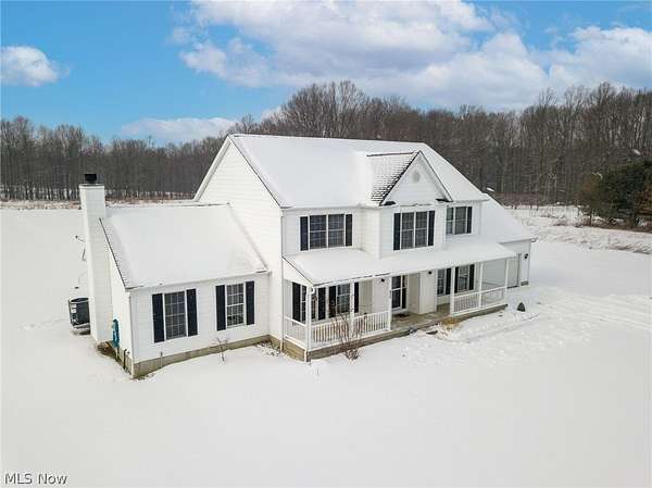 You will love this beautiful updated 4 bedroom colonial sitting on almost 5 acres with room to roam inside & out! The spacious foyer featuring 2 large closets & split staircase opens to formal Living & dining rooms. Updated eat-in kitchen features granite counters, stainless appliances, large pantry & breakfast island and opens to the expansive family room with woodburning fireplace. An office, half-bath & laundry room complete the first floor. Upstairs enjoy a large owner suite featuring soaking tub, double vanity and walk-in closet. 3 additional bedrooms & full bath complete second floor. The finished basement features a large rec room. Enjoy the rural setting from large covered front porch or entertaining on the covered back porch featuring 3 ceiling fans, speakers & drop-down shades. Recent updates include; LVT flooring, carpet, paint, granite counters & updated fixtures! Additional updates include: Air Conditioning/Heat Pump (2025), Water Heater (2025), Garage Door Opener 2025. Conveniently located between State Routes 82 & 303 with a short drive to the Ohio Turnpike and I-76.