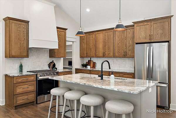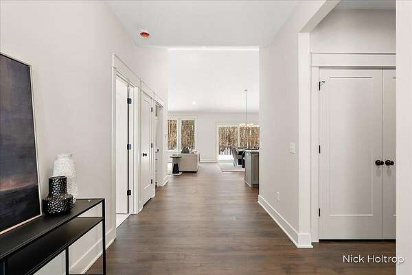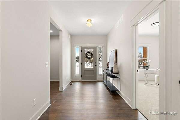 Welcome to this Stunning New Construction Custom Home on 1.5 Private Acres! Discover privacy and modern luxury in this beautiful brand-new custom-built home, perfectly situated on a sprawling 1.5-acre lot with a serene wooded backdrop. This home offers the rare combination of peaceful, nature-surrounded living with convenient access to local amenities such as grocery stores, restaurants, Grand Valley State University, and major commuter routes. Just 20 minutes to the beaches of Grand haven and 20 minutes to the City of Grand Rapids. Step inside to an impeccably designed interior featuring stunning, high-end finishes throughout. Every detail has been thoughtfully selected to create a warm, sophisticated atmosphere-from elegant flooring and designer lighting to premium custom built cabinetry, quartz countertops, and custom trim work. The open-concept layout is ideal for both everyday living and entertaining. Call for a private tour today!