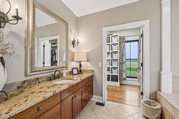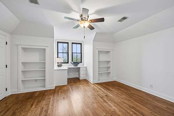 Additional bedrooms are arranged around a central hallway on the upper floors, sharing access to full bathrooms. The layout provides a good split between the primary suite and secondary bedrooms for privacy. You'll also find bonus room space that works well as an office, playroom, or flex area depending on your needs. The laundry room is conveniently located on the main level.