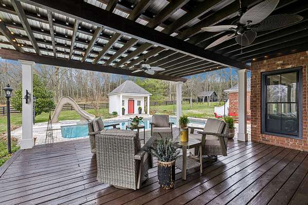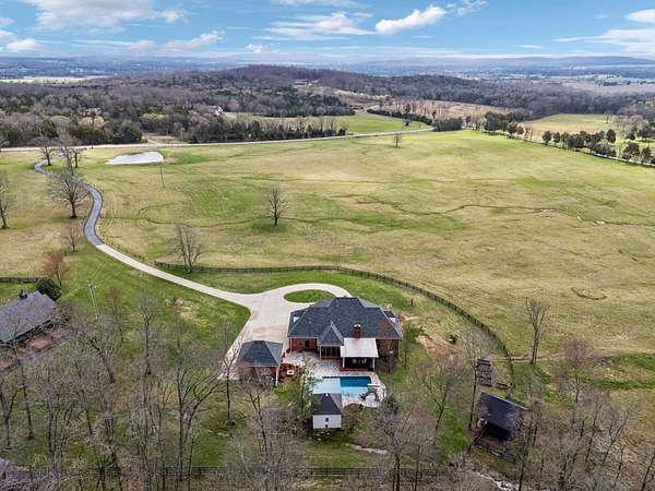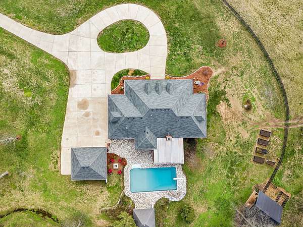 Outside, the wooded and fenced yard includes a pool with a pool house, fire pit, covered patio, and deck for outdoor living. An attached two-car garage with a separate two car garage building provides covered parking, and there's 3 total storage buildings on the property for extra storage and projects. Recent updates include new windows installed a year ago, and the roof was replaced in 2015. A buried 1000-gallon propane tank services the gas appliances. The location in Lascassas puts you in a quiet area of Rutherford County with easy access to Murfreesboro and the broader Nashville area. The wooded setting and larger lot size give you space and privacy while staying connected to nearby amenities and major routes for commuting. Owner is selling 23 acres off a larger tract. Additional acreage is available to be purchased. Taxes listed are for the entire tract.