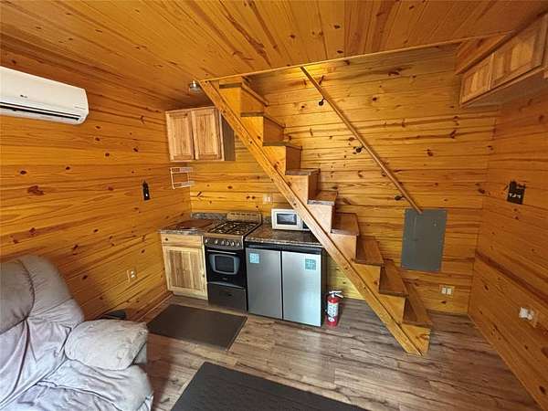 Tucked away on two tree-filled acres just minutes from Purtis Creek State Park, this charming one-bedroom tiny home offers the perfect blend of simplicity, privacy, and potential. Surrounded by nature, the property provides a peaceful, quiet setting—ideal for those seeking a relaxing getaway or envisioning the start of a future country homestead. In addition to the cozy home, the property includes a spacious 20x30 metal building, two storage sheds, and a metal shipping container, offering ample room for tools, equipment, or hobby space. The abundance of trees enhances the sense of seclusion while creating a serene backdrop for outdoor living. While the home does not currently have plumbing, it is equipped with a commercial composting toilet housed in its own separate structure, providing a practical off-grid solution.