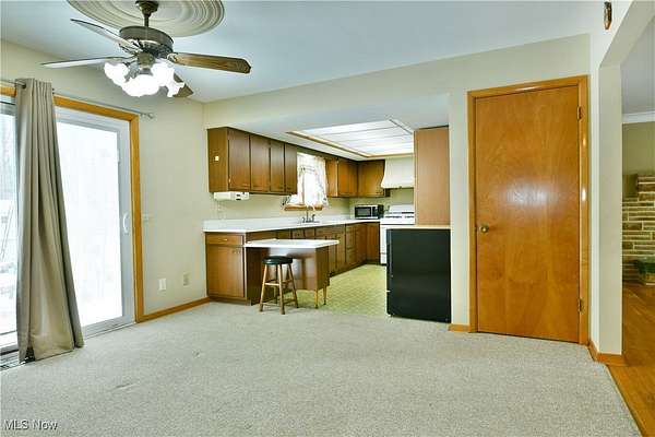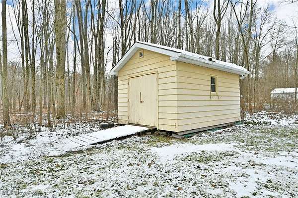 You won't have to take a trip to the North Pole to find what you've been searching for this year; it's all right here in Bazetta, wrapped up in a desirable ranch package! Welcome home to this darling property, offering nearly two acres of potential packed land that includes a large storage shed. Tall trees provide natural privacy as the frontage showcases its warm, brick accents and covered front patio. Step inside to find a move-in-ready, three bedroom layout that begins with a spacious living room and its stone trimmed fireplace, ready to warm you back up on those cold, snowy nights. The impressive kitchen and central dining rooms are located just steps away, delighting with perfect backyard views. Long running countertops join the dark stained cabinetry within the galley layout, brimming with plenty of overhead lighting. Down the main hall, a robust full bath provides neat tile work and a sizeable, mirrored vanity. The trio of bedrooms each reveals hardwood flooring with matching trim and ample closet space to complete the floor. Down below, a full basement includes a lower fireplace, laundry, utilities, and bonus storage space. Call today for your private showing!