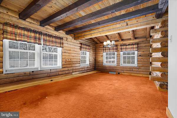 Rare opportunity to own a slice of rustic Maryland charm! Situated on 3 private acres in Rising Sun, this 1970s log cabin is a true diamond in the rough. Featuring 3 bedrooms and 1 full bath, the home offers an authentic wood-clad interior that provides a cozy, mountain-retreat feel. New A/C unit and commerical dehumidifier in the basement. This property has been held by the same family since it was built and has never been updated, making it the perfect "blank canvas" for your modern farmhouse or rustic renovation dreams. Outside, enjoy a sprawling, level lot and a large detached 2-car garage perfect for a workshop or extra storage. Property is being sold AS-IS as part of an estate. Bring your vision and your contractor to unlock the incredible equity and lifestyle this unique acreage offers!