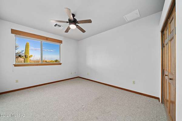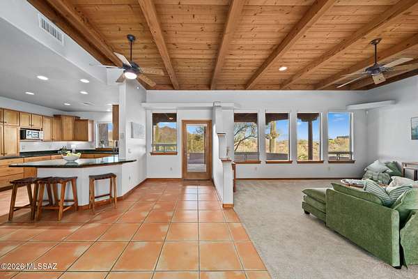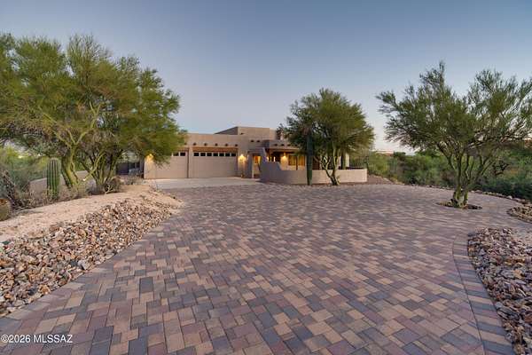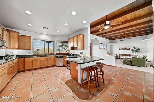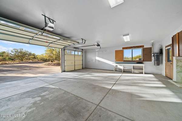 Custom built 4 bedroom 3 bath home on 3.57 acre parcel offering wide open desert vistas and panoramic views of the Catalina Mountain range. thoughtfully laid out with abundant natural light.Open, bright and inviting great room features the warmth of wood and beamed ceilings which opens to the kitchen w/custom oak cabinets, granite counters, stainless steel cabinetry, stainless steel appliances, and attractive breakfast bar. Split bedroom plan~primary bedroom w/large walk in closet, mountain views~primary bathroom w/ dual vanities, jetted tub, separate walk in shower. Features throughout include recessed lighting, ceiling fans, 6 panel doors, abundant storage. Large covered patio with rustic wood beams enhance the feeling of genuine comfort. Peaceful, quiet, and serene setting. No HOA!